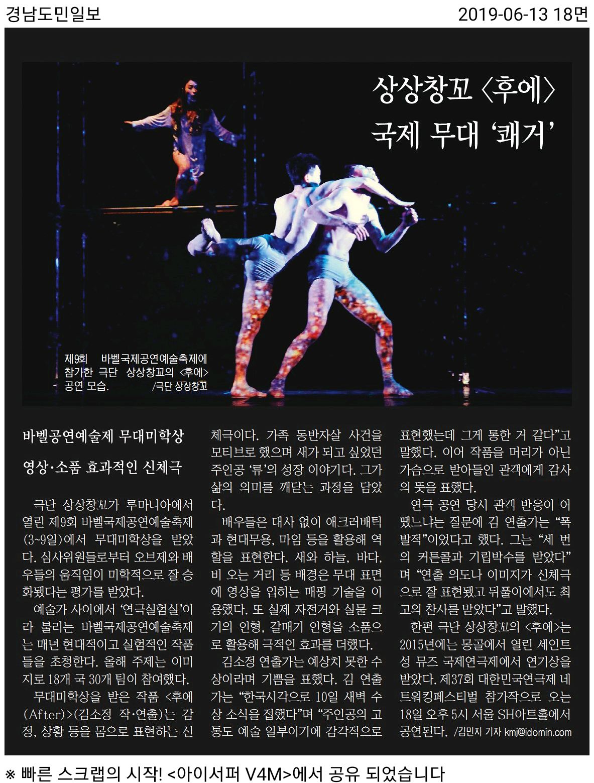| 경남 연극계의 세계무대 진출 눈에 띄네 (0) | 2019.05.30 |