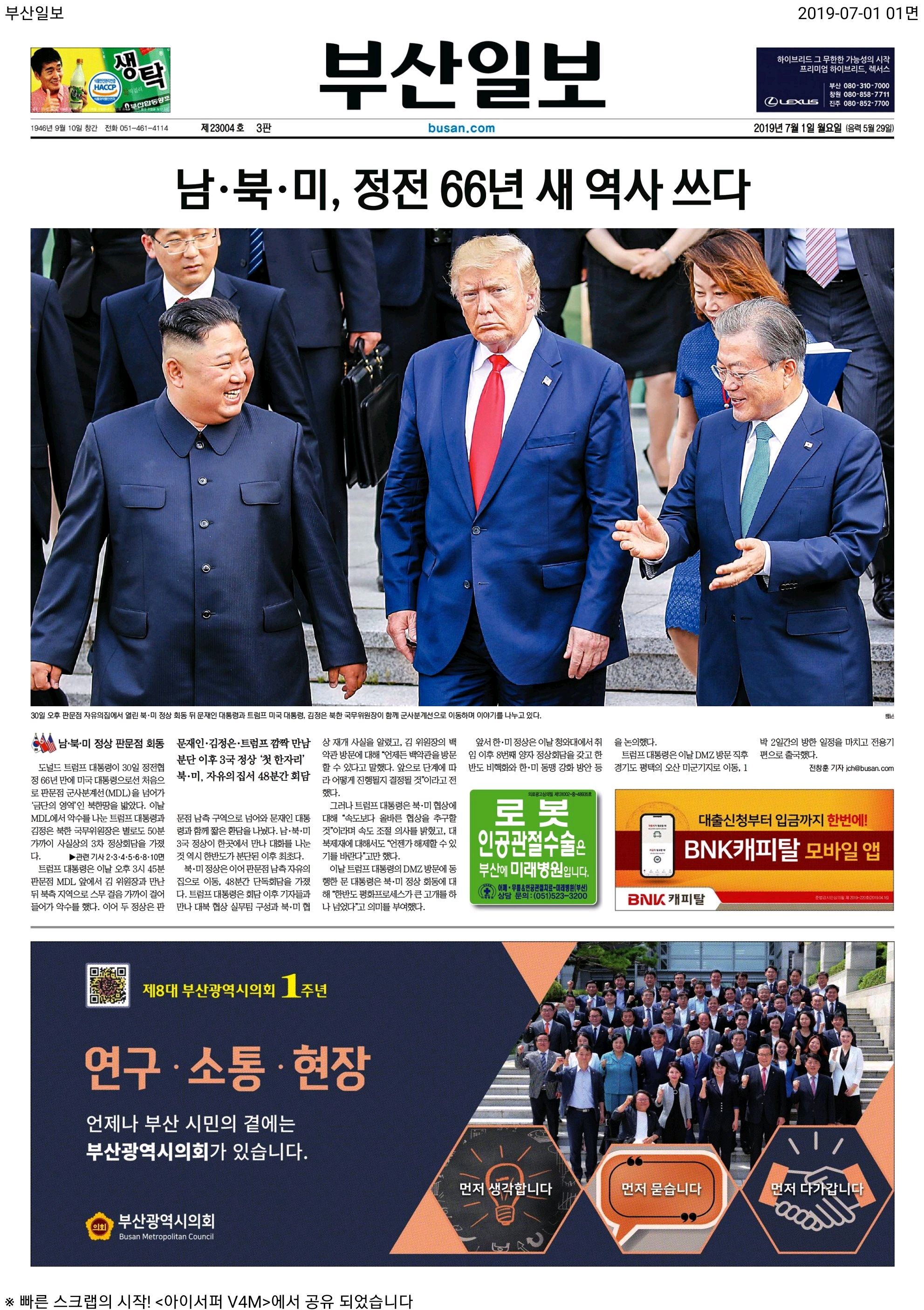 나머지는 거의 대동소이하다. 남북미 정상회동 기사 1건에 광고를 빼지 못한 편집. 이런 때에 과감하게 1면 광고를 뺄 배짱이 필요한데, 사실 현대 사회 팽배한 먹고사니즘을 극복하기 쉽지 않다는 것을 반영한 장면은 아닐까 싶기도 하다.
