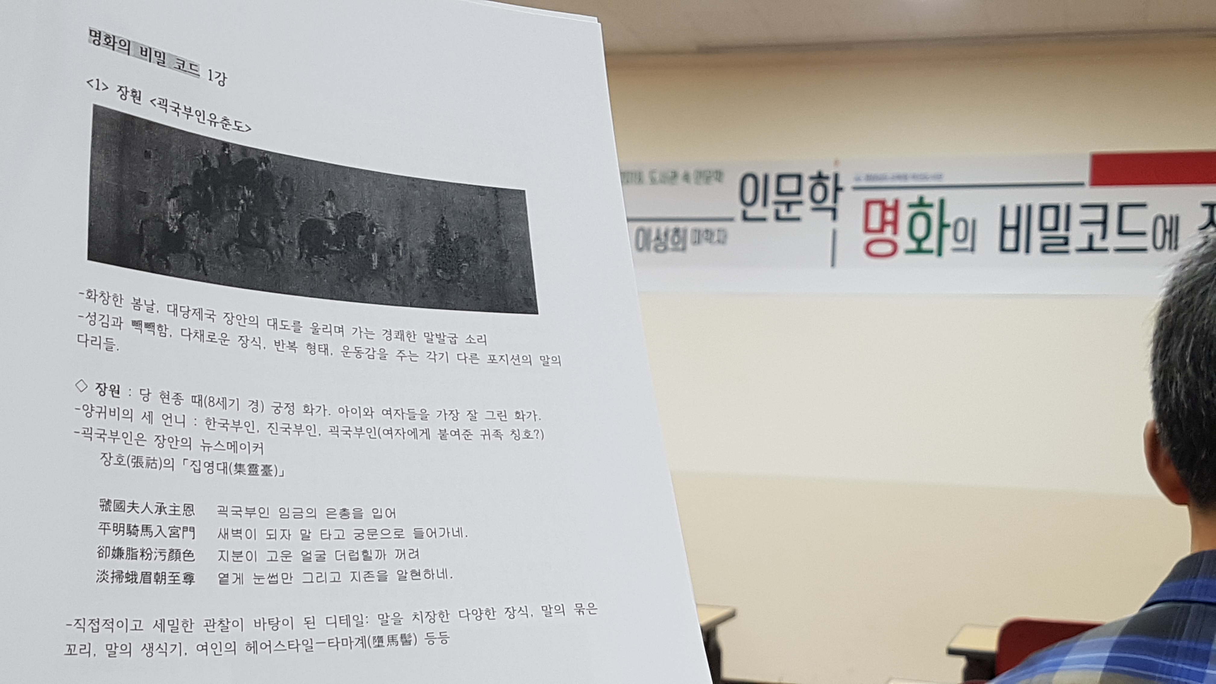 미리 배포된 자료를 보니 장훤의 '괵구부인유춘도', 라파엘로의 '아테네 학당', 파르미자니노 '긴 목의 성모' 등 그림 속에 어떤 비밀이 숨겨있는지 밝혀본다.