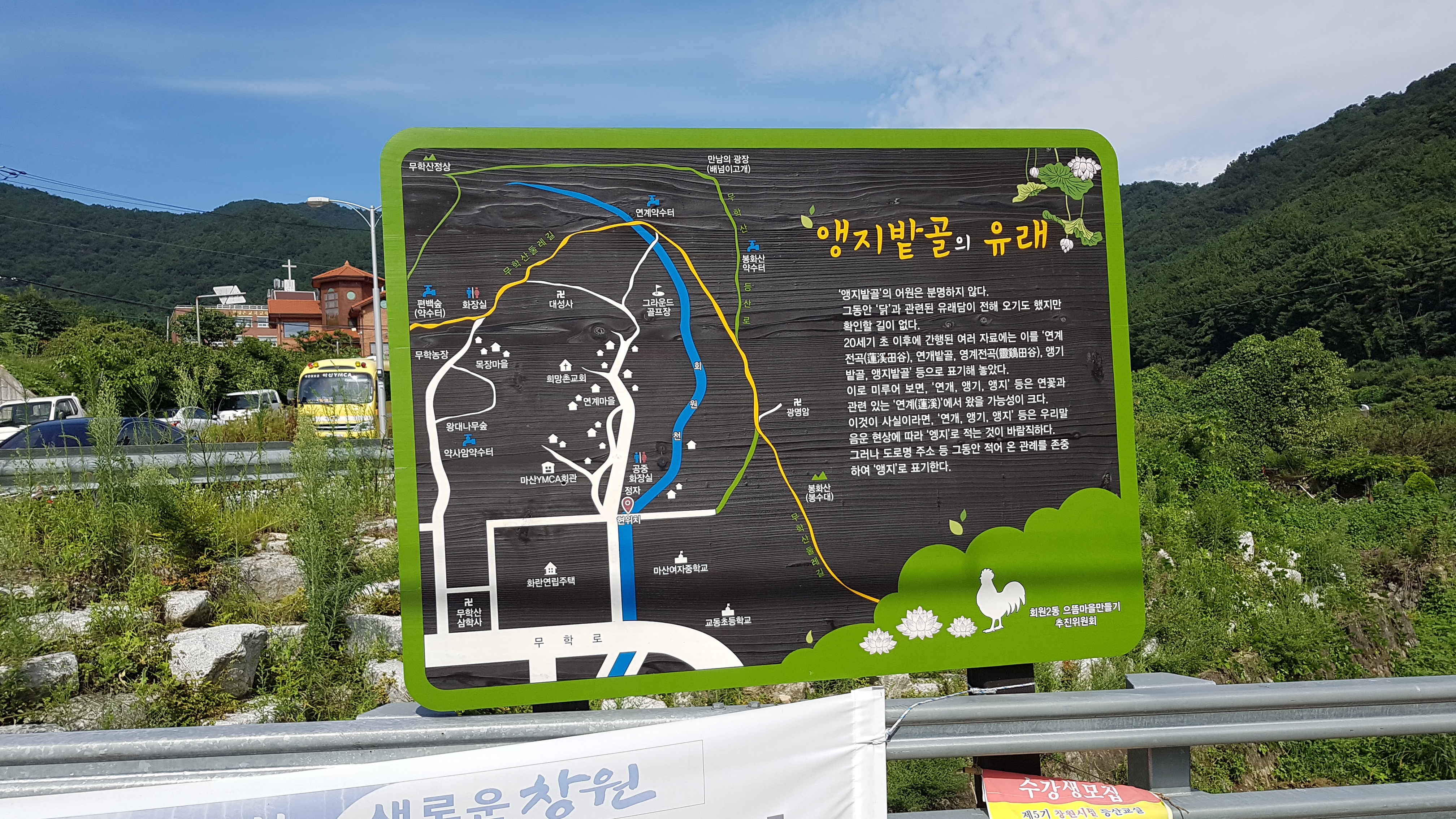 앵지밭골이라는 지명을 종종 들었더랬는데, 이번에 그 이름의 의미를 알게됐다. 물론 표지판에 나타난 것처럼 유래가 정확한 것은 아니다. 앵지는 연계, 연개, 앵기에서 변화했다는 설이 있다. 여튼 우리는 마산여자중학교 입구에서 출발했다.