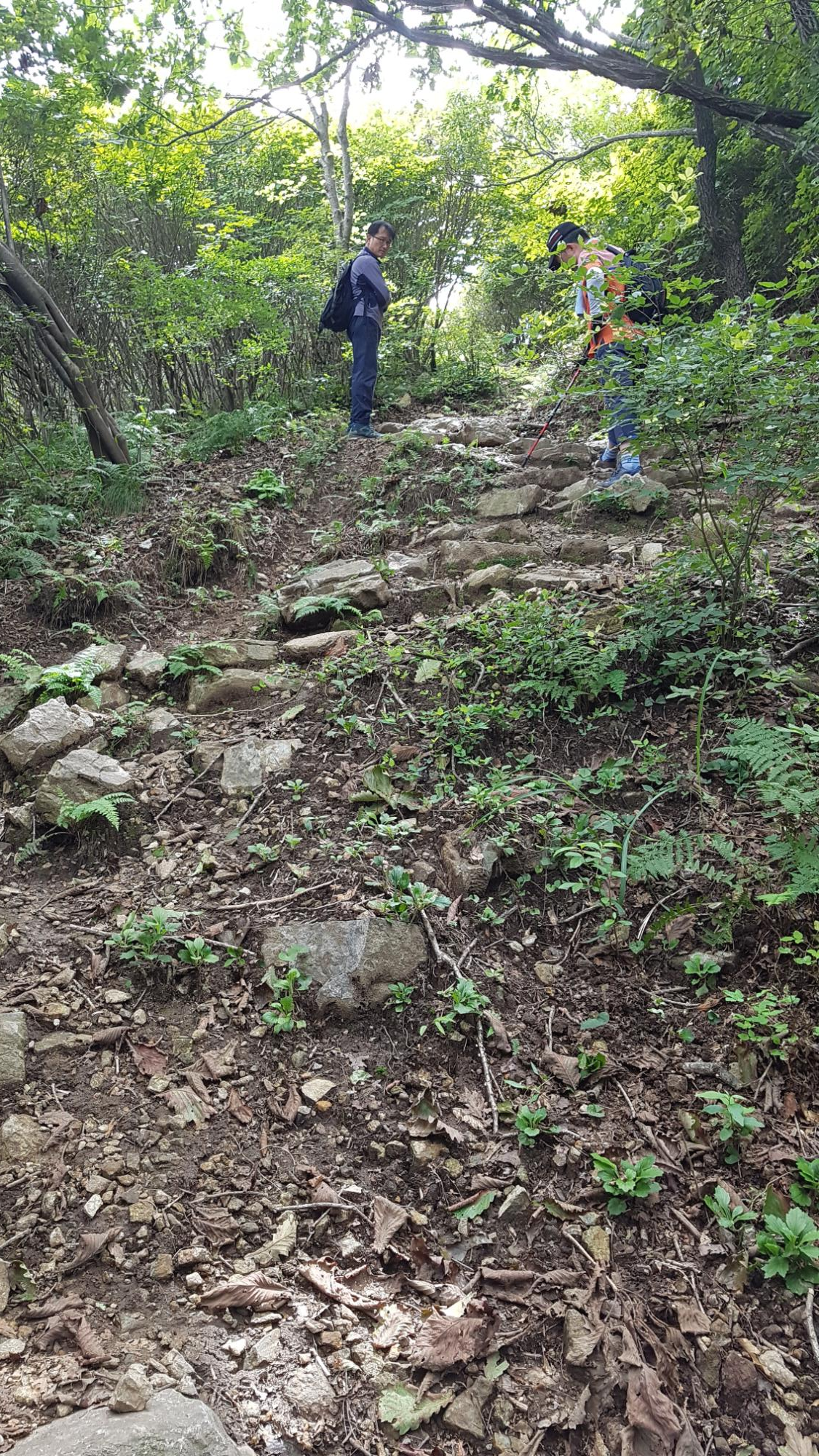 서마지기에 다다른 곳. 경사가 심하다. 핵핵! 온몸이 땀으로 범벅이다. 근데 앞선 두 사람 왜 그리 할랑한고. 전혀 지치지도 않고 설렁설렁 올라간다.