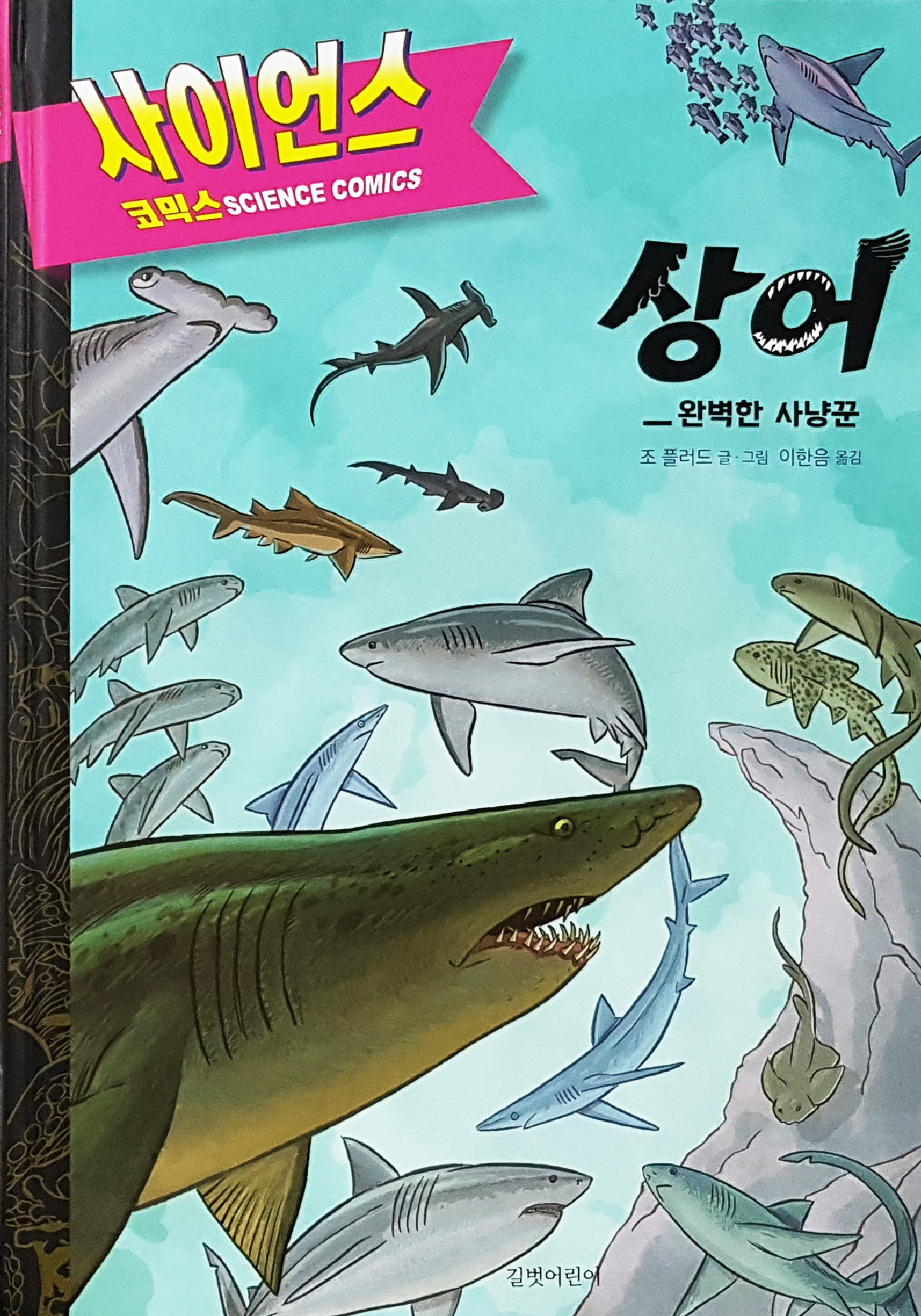 ◇상어_완벽한 사냥꾼 = ‘사이언스 코믹스’ 시리즈. 4억 년 이상 지구를 누벼 온 바다 생태계의 최강자인 상어의 모든 것을 담은 백과사전이다. 괴물 상어를 찾아 떠나는 과정을 줄거리로 흉상어, 돌발상어, 수염상어, 신락성어, 톱상어, 전자리상어, 괭이상어, 악상어목 등 8개 목에 이르는 다양한 상어를 소개하고 있다. 조 플러드 글·그림·이한음 옮김. 길벗어린이 펴냄. 132쪽. 1만 2000원.