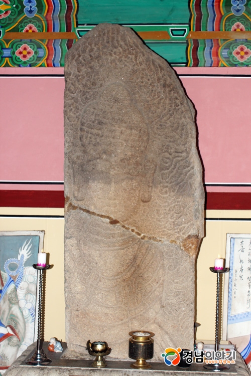 미륵존불상은 경상남도 문화재자료 제21호입니다. 이 미륵존불상은 관음사 내 성법보전 옆 작은 보호각 안에 들어 있는데 누구에게나 볼 수 있도록 개방되어 있습니다.