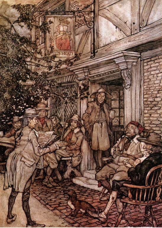 이 작품은 영국 왕이 신대륙 아메리카를 지배하던 미국 독립전 시점에서 시작한다. 주인공 립 밴 윙클은 부인들이 싫어하는 전형적인 인물이다. 남한테는 잘해주고 집안일을 등한시하는. 보잘것 없는 이 인물이 소설의 주인공이 되고 나중에 영웅담도 아닌 영웅담을 풀어놓는 주목받는 사람이 된다는 건 아무래도 내키지 않는다.