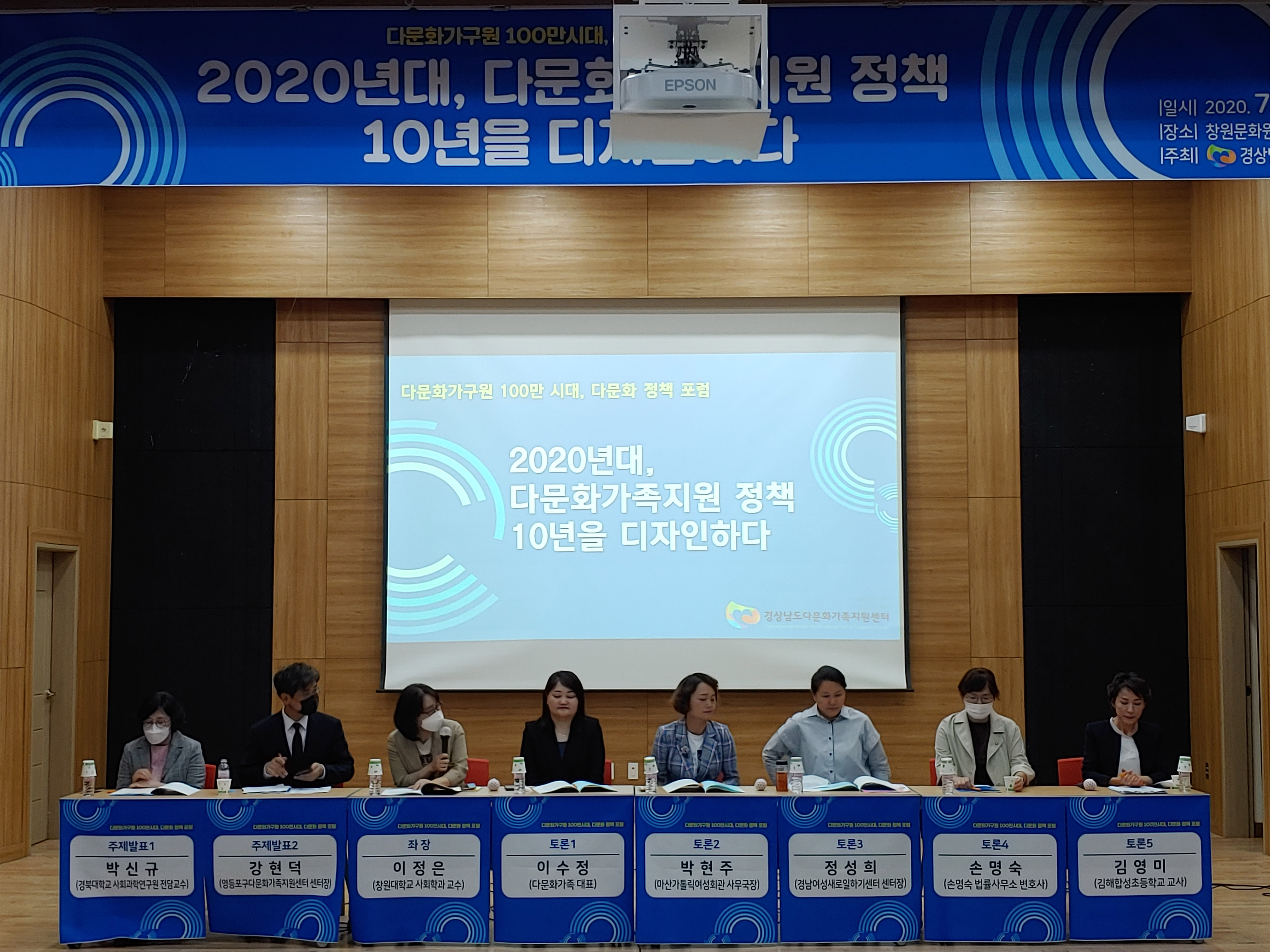 ‘2020년, 다문화가족지원 정책 10년을 디자인하다’를 주제로 2006년부터 수립된 다문화정책 15년을 진단하고, 앞으로 10년의 경남형 다문화가족지원정책 길잡이 마련으로 중장기 발전방안을 모색하는 자리로 다문화가족정책 진단 및 발전방안, 지방정부의 다문화가족지원방안 모색 등에 대한 주제발표가 있었다.