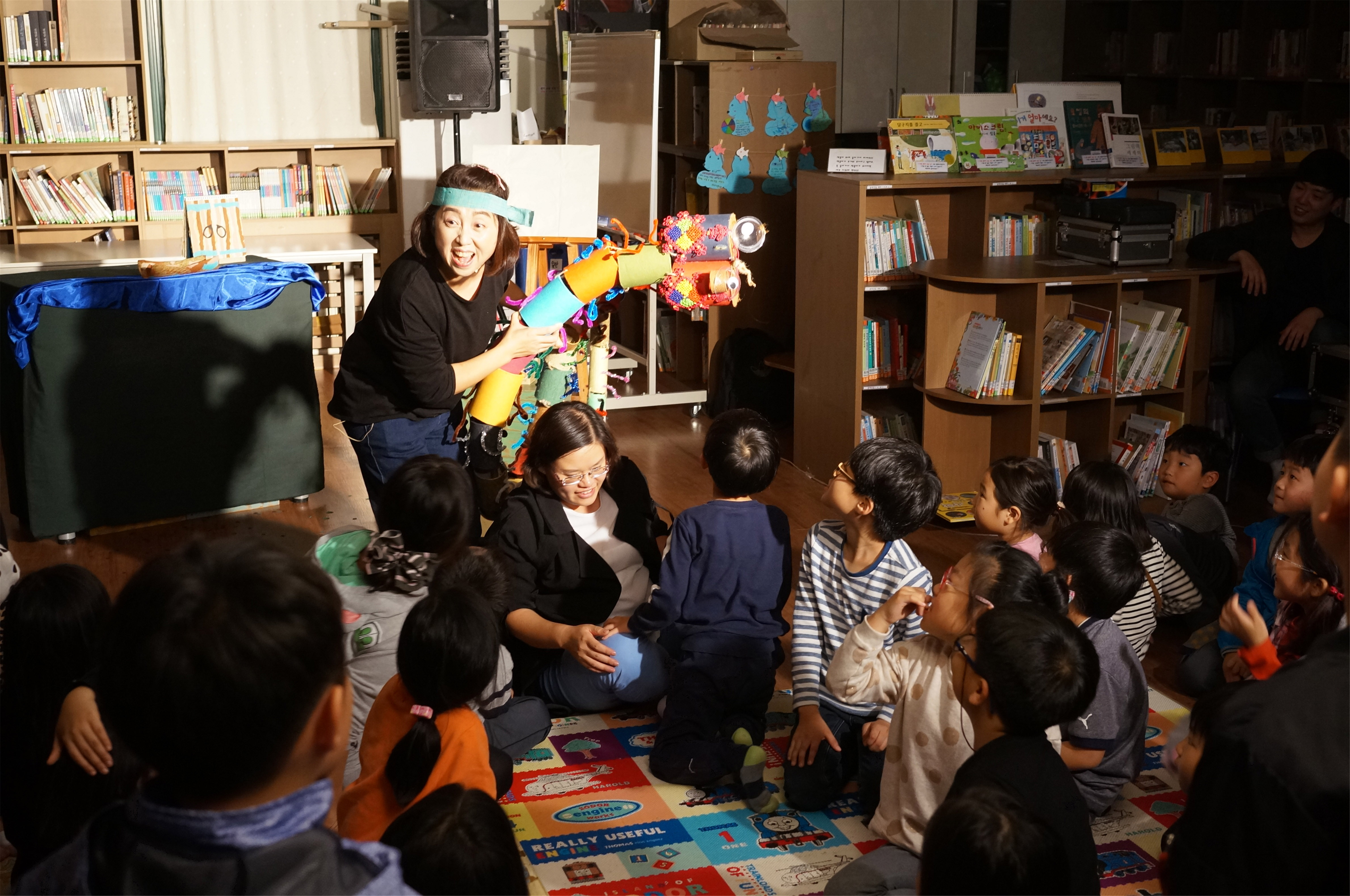 - 노래와 그림이 어울려진 독특한 이야기 들려주기 방식과 관객이 참여하여 장면을 완성하는