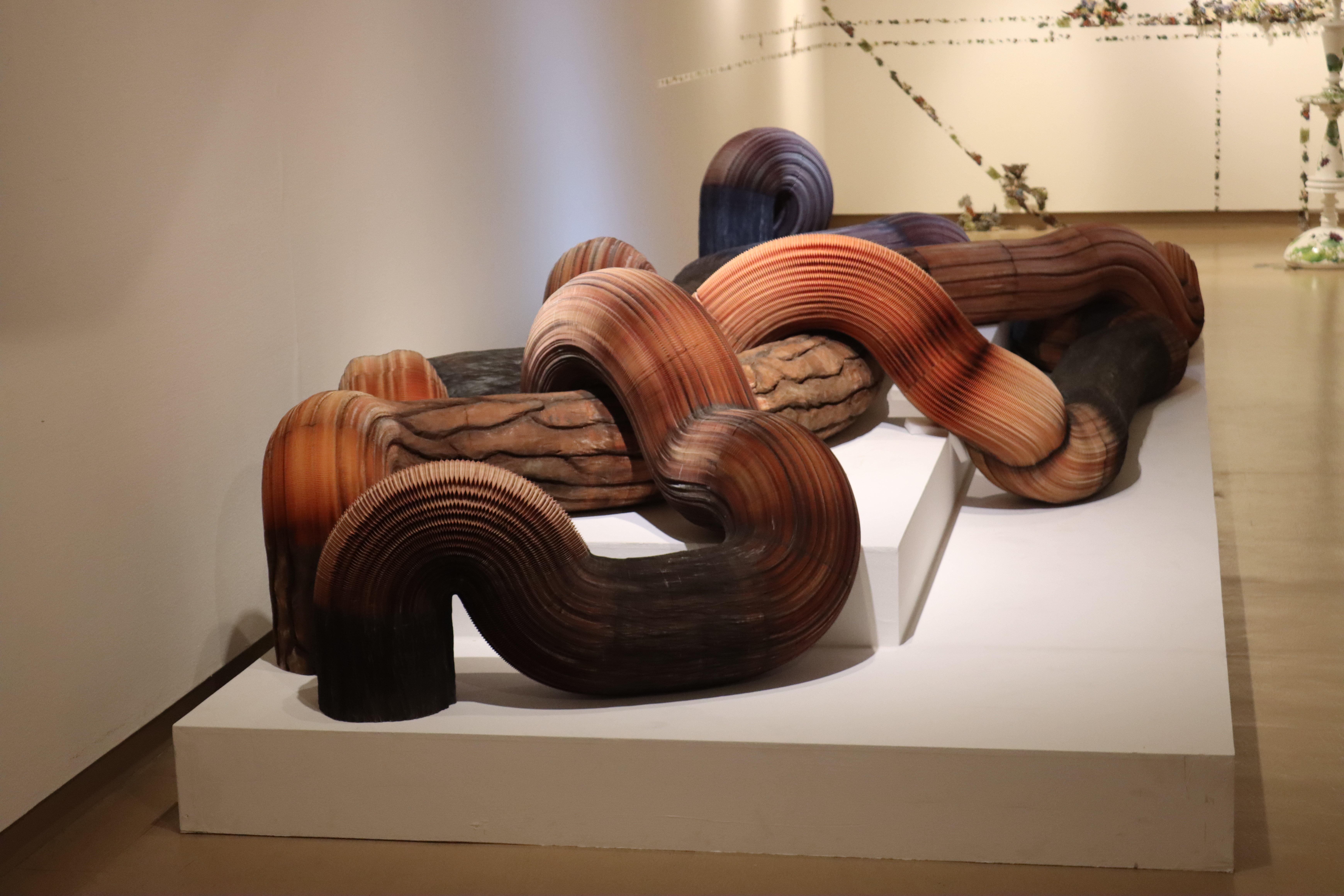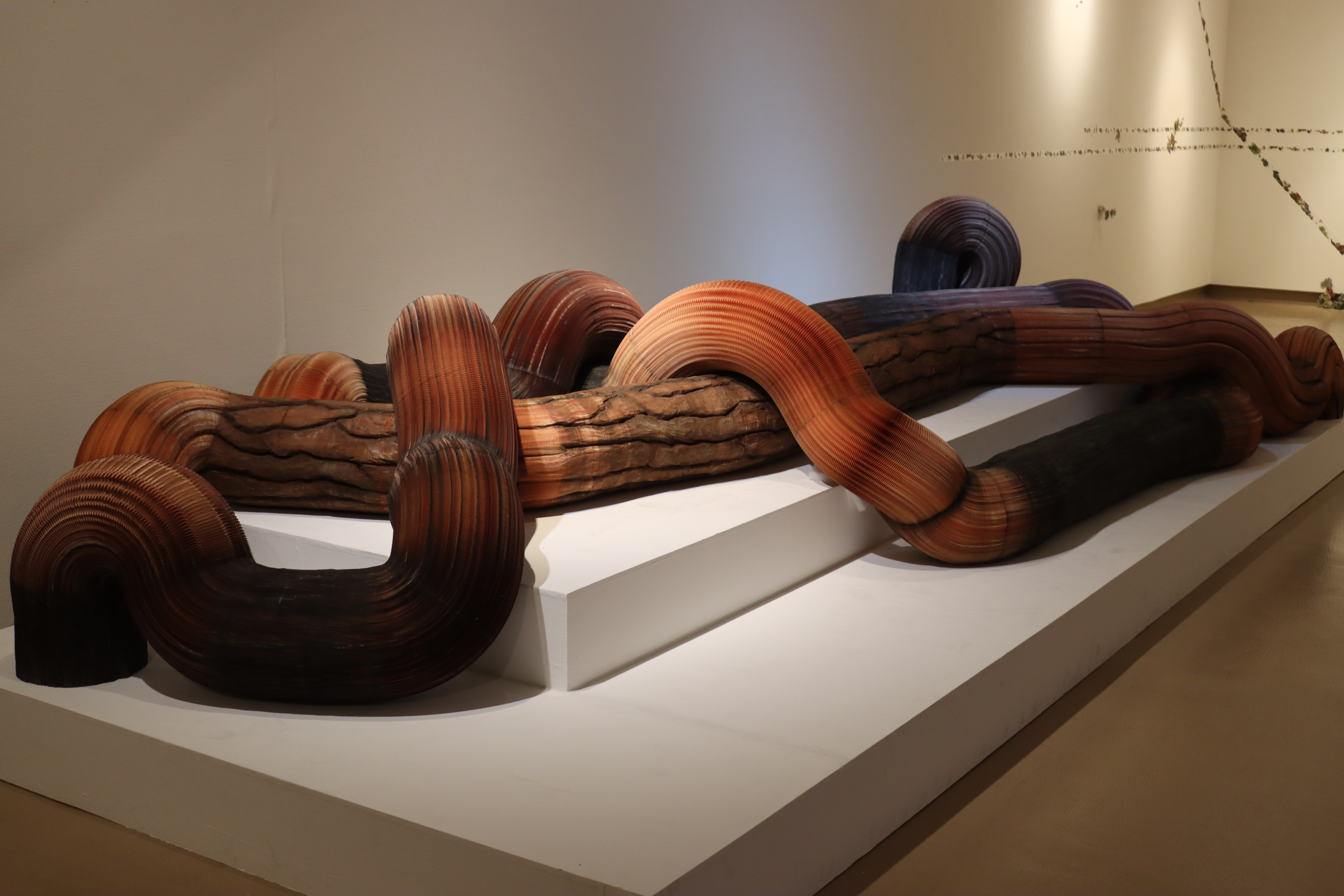 작가는 우리에게 이렇게 말합니다. “작품은 더 부드러운 모습을 위해서 익히 우리가 알던 단단한 형태를 버립니다. 이러한 변화는 현실계의 감각 세계가 영원하지 않다는 것을 반영합니다.” 그렇군요. 모든 것은 변하는군요. 그리고 이 작품은 원래의 자연의 의미 또한 되새기게 해줍니다. 단단하고 딱딱한 나무라는 것이 땅에 뿌리를 내리고 살아있을 때에는 나이테를 만들고 옆으로 위로 자라는 움직이는 존재였음을 말이죠.