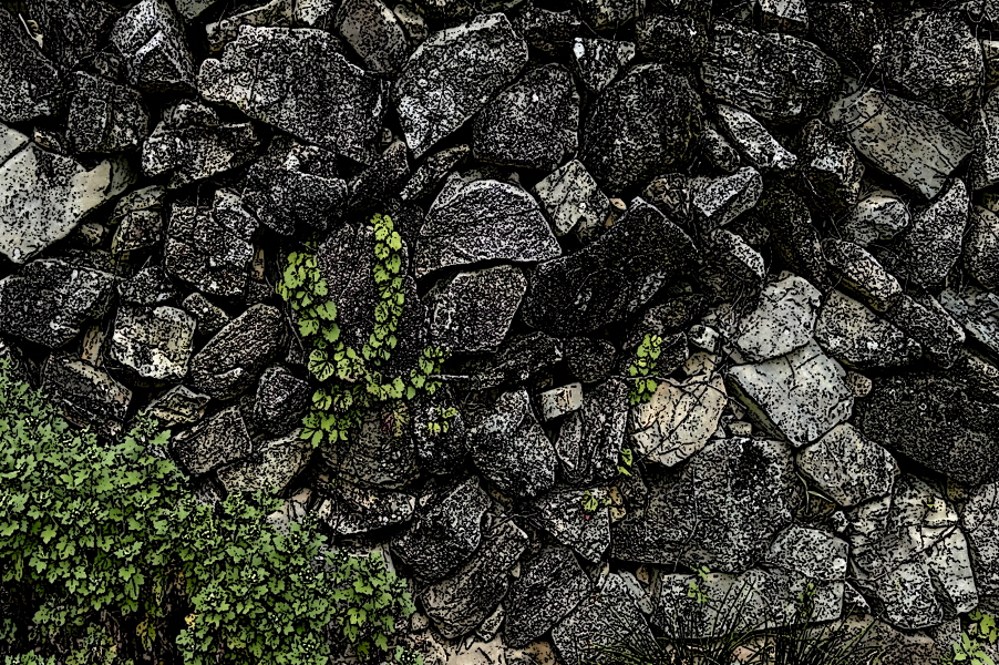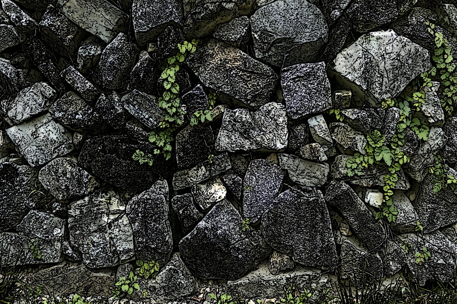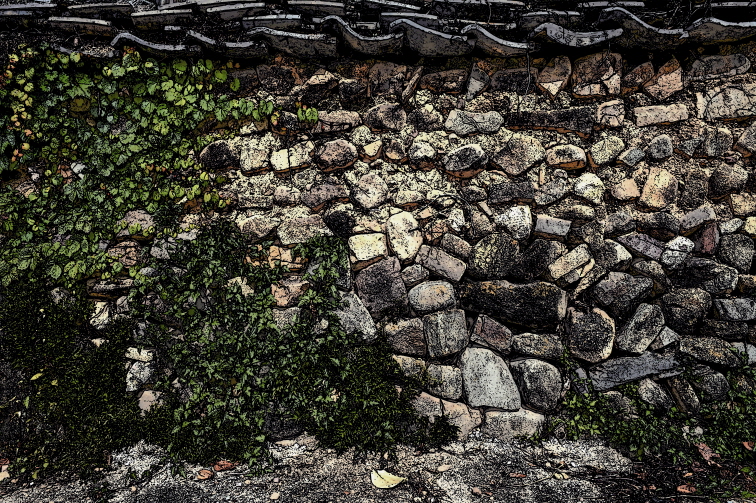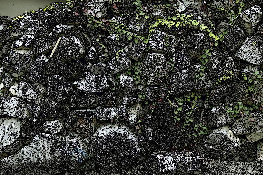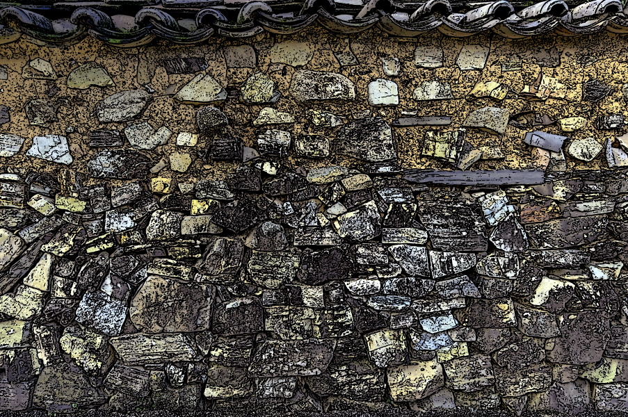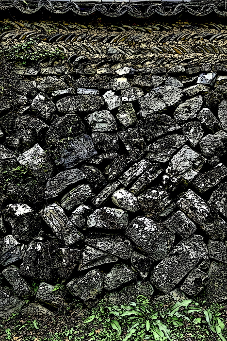 돌담의 단순한 이미지에 회화적 요소를 더하여 질감의 변화를 시도한 색다른 느낌을 주는 변화된 사진으로 재 구성하고 작업한 새로운 표현양식으로 재현한 사진이다