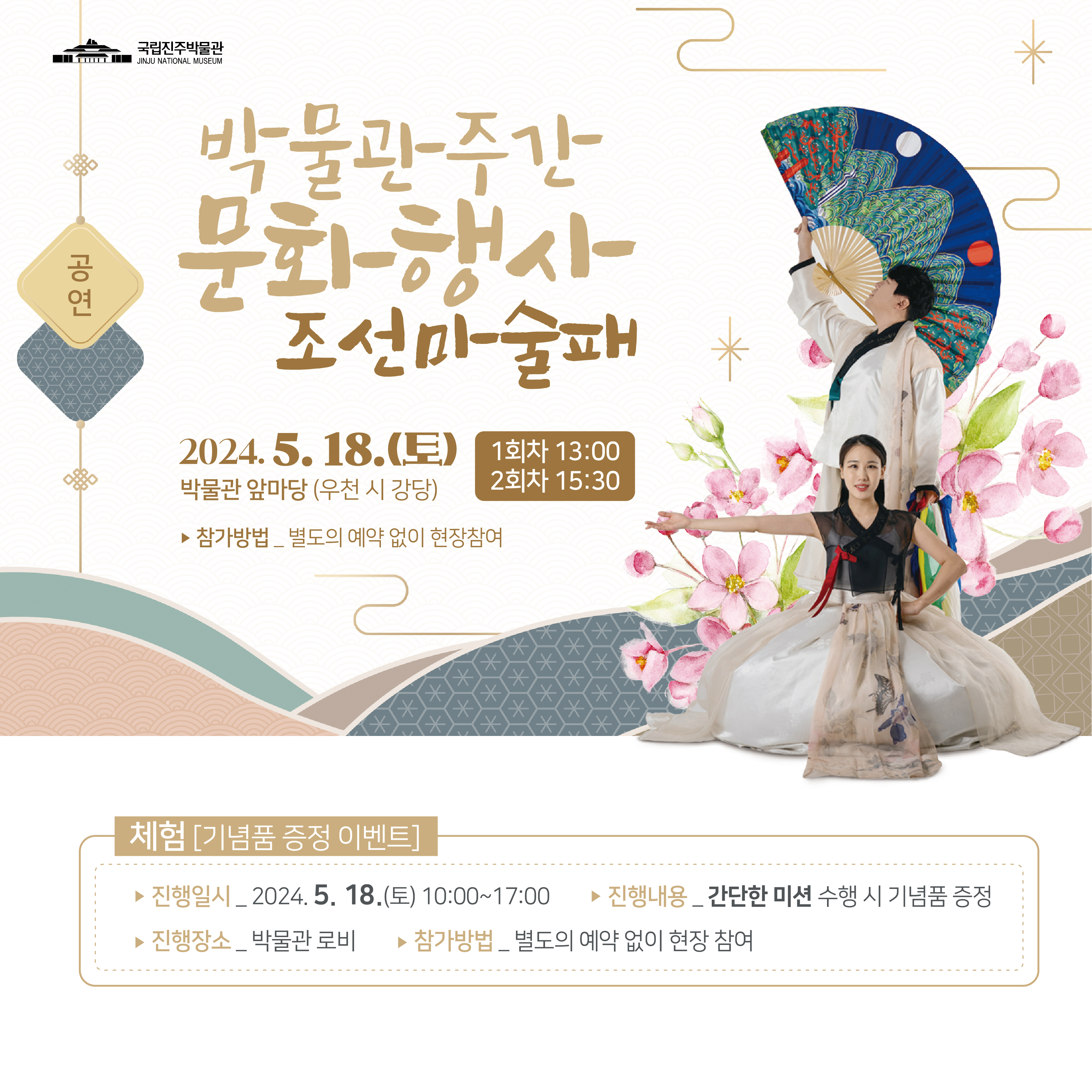 국립진주박물관(관장 장용준)은 「2024 박물관·미술관 주간(5.2.~5.31.)」*을 맞아 “박물관주간 문화행사”를 실시한다. 행사일은 5월 18일(토)이며, 국립진주박물관 일원에서 마술 공연과 기념품 증정 이벤트를 진행한다.