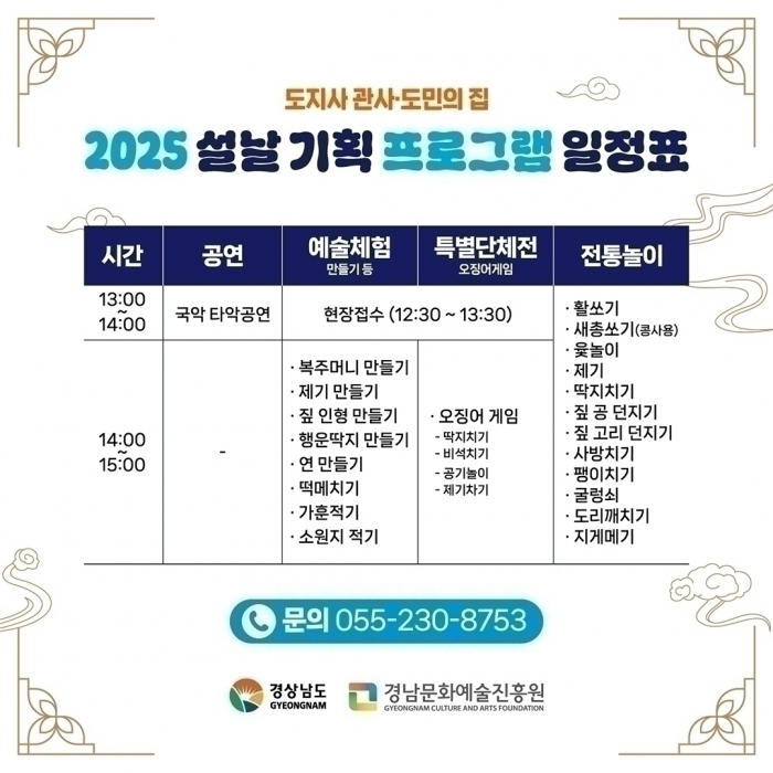 - 행사명: 2025 도지사 관사·도민의 집 설날 기획 프로그램