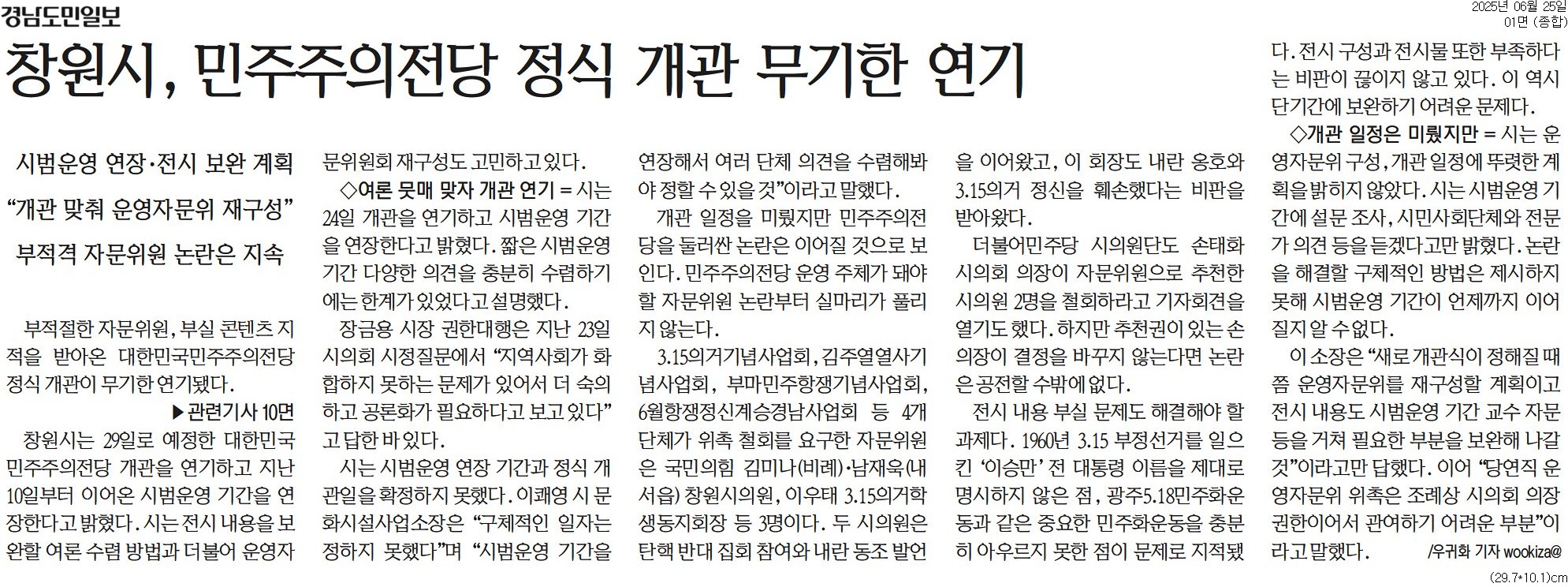 | (주간경남뉴스픽)20250407홍남표 시장직 상실, 김해시내버스 파업 타결 (4) | 2025.07.13 |