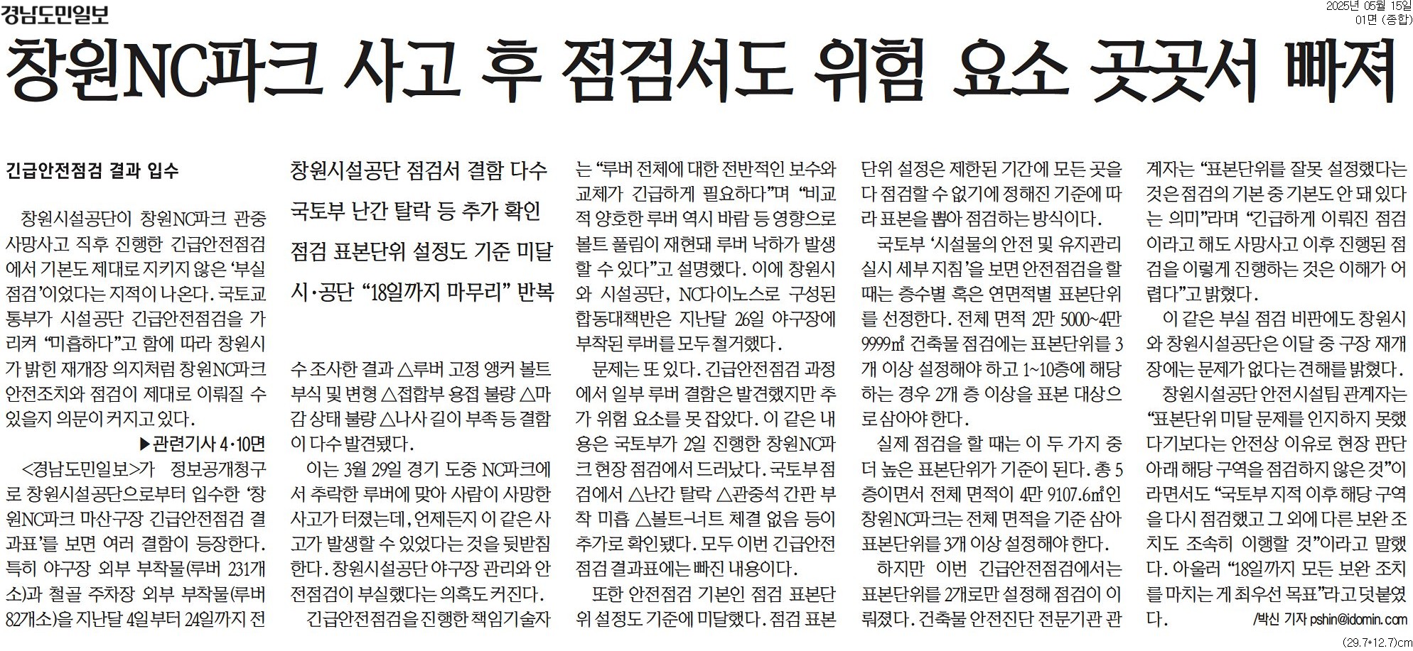 4. 그렇다면 현재 NC파크의 안전 점검 문제는 어떻게 진행되고 있나요?