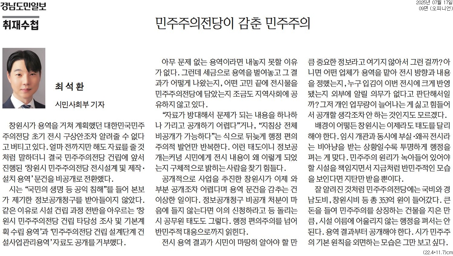 | (주간경남뉴스픽)20250630우주항공복합도시법, 민주주의전당 무기 연기 (0) | 2025.07.13 |