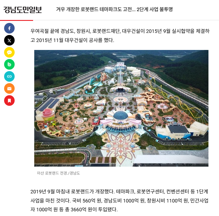 어쨌든 우여곡절 끝에 경남도와 창원시, 로봇랜드재단, 대우건설이