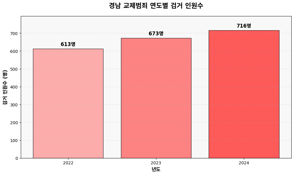 지난 3년간 경남에서 교제범죄로 검거된 인원수가