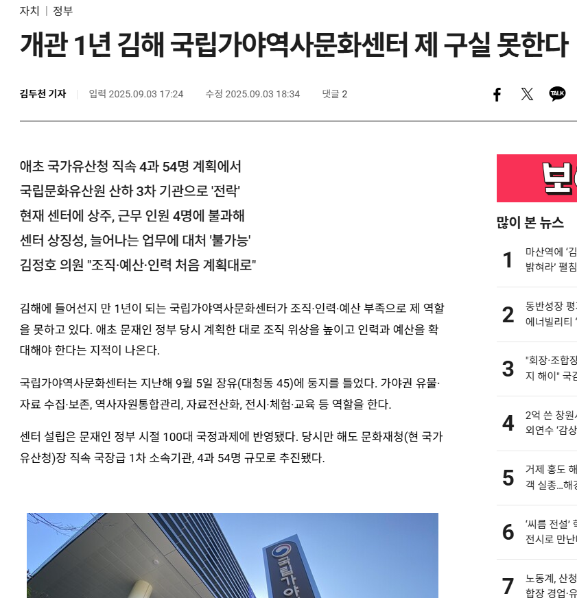 다음 소식으로 넘어가죠. 개관 1년이 넘었는데, 국립가야역사문화센터가 제구실을 못하고 있다니 그게 무슨 말이죠?