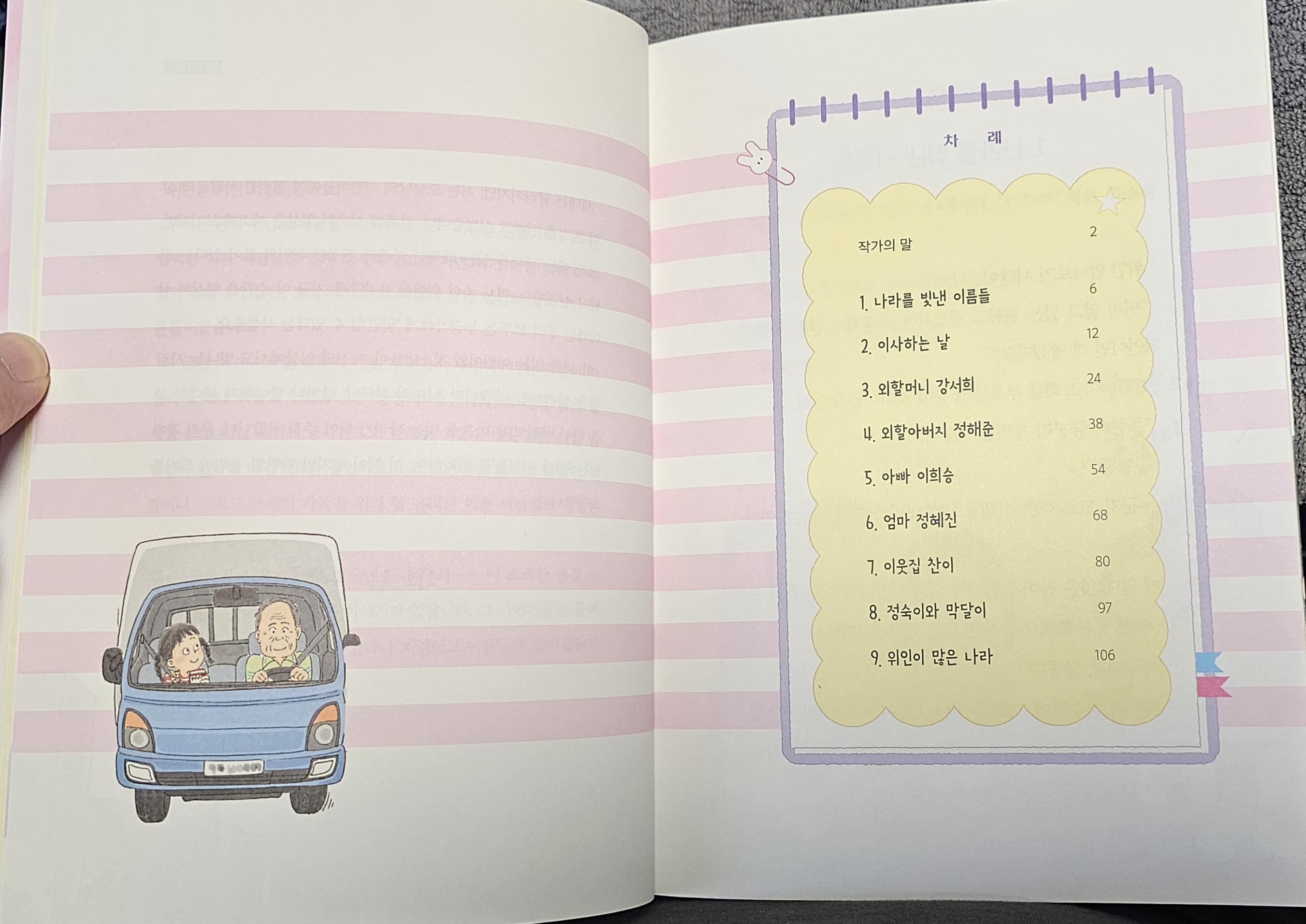 자기 차례가 된 이음이는 외할아버지 이름을 댄다. 그러면서 자연히 쿵쿵따는 가족과 주변의 훌륭한 인물에 눈길을 돌리게 된다.