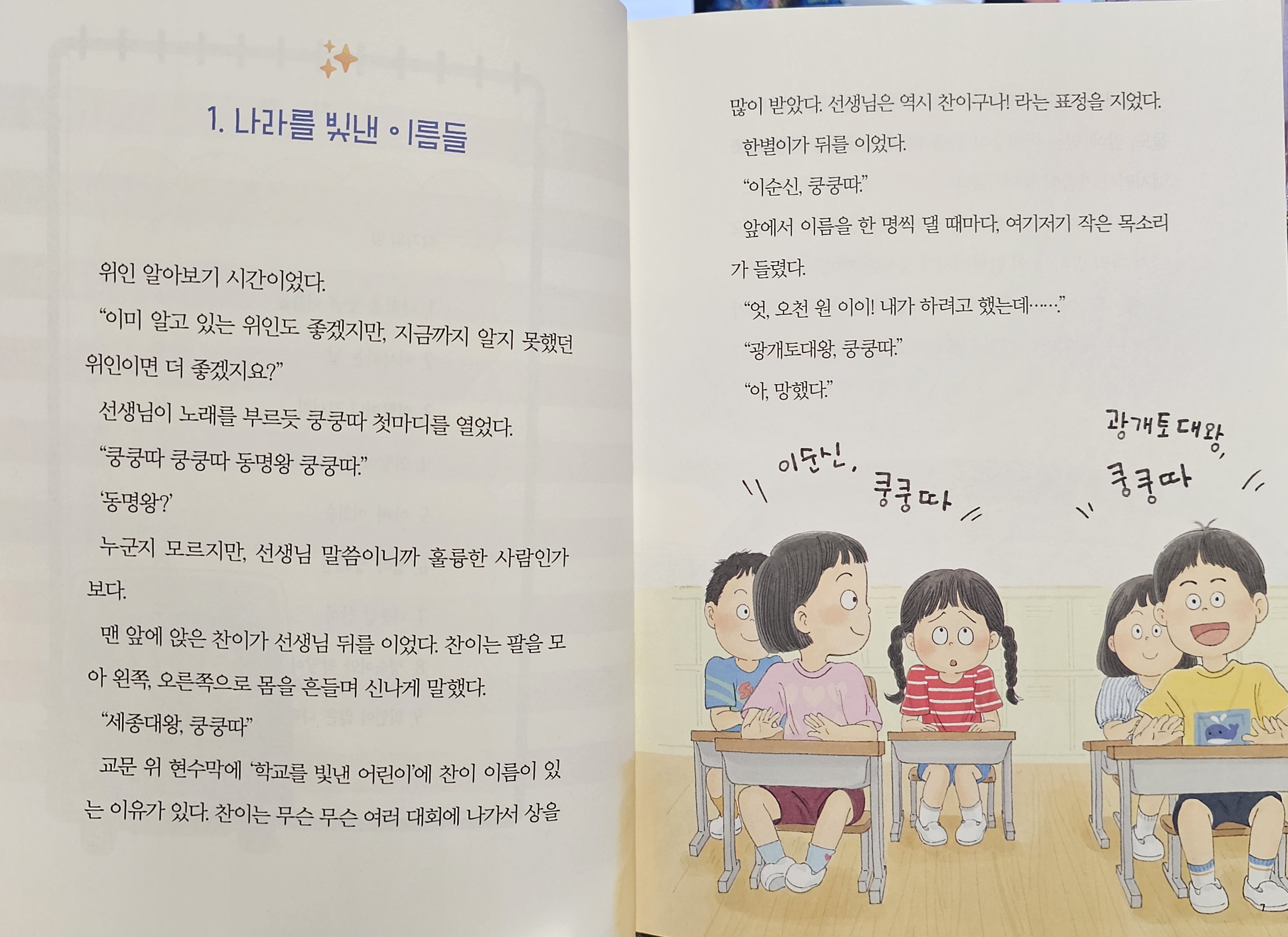 스토리는 주인공 이음이의 교실에서 쿵쿵따 위인 이름대기 게임을 하면서 시작한다. 반 친구들이 먼저 이순신, 광개토대왕 등 자기가 알고 있는 위인 이름을 대자 점점 초조해진다.