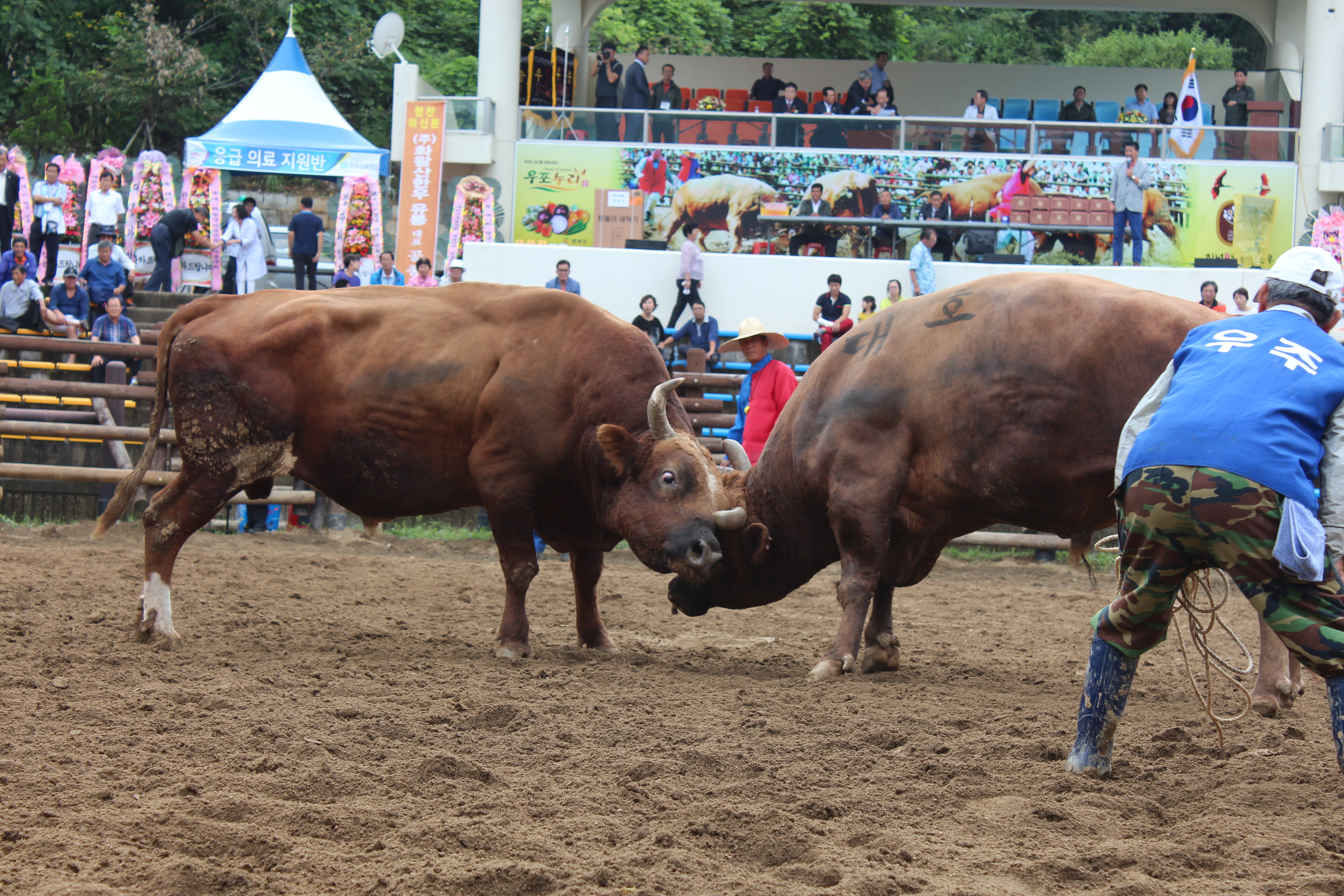 예전엔 소싸움대회라고 하다가 최근엔 소힘겨루기대회라고 순화해서 표현을 하던데