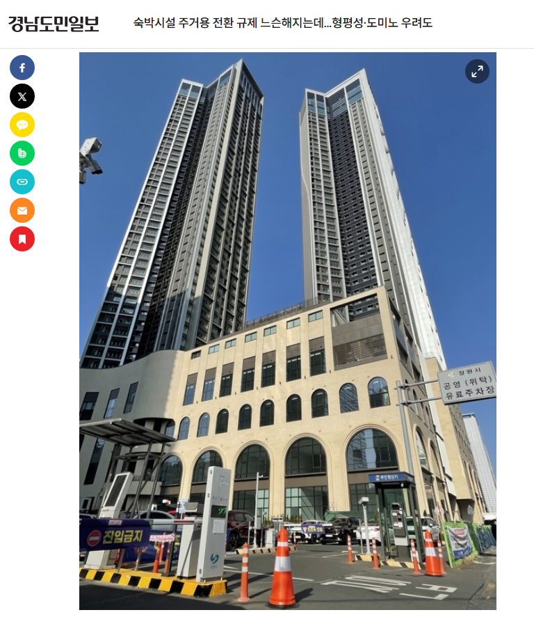 - 창원 상남동 ‘힐스테이트 창원 센트럴’(296실)이 생숙에서 오피스텔로 용도변경되며 논란이 본격화됐다.