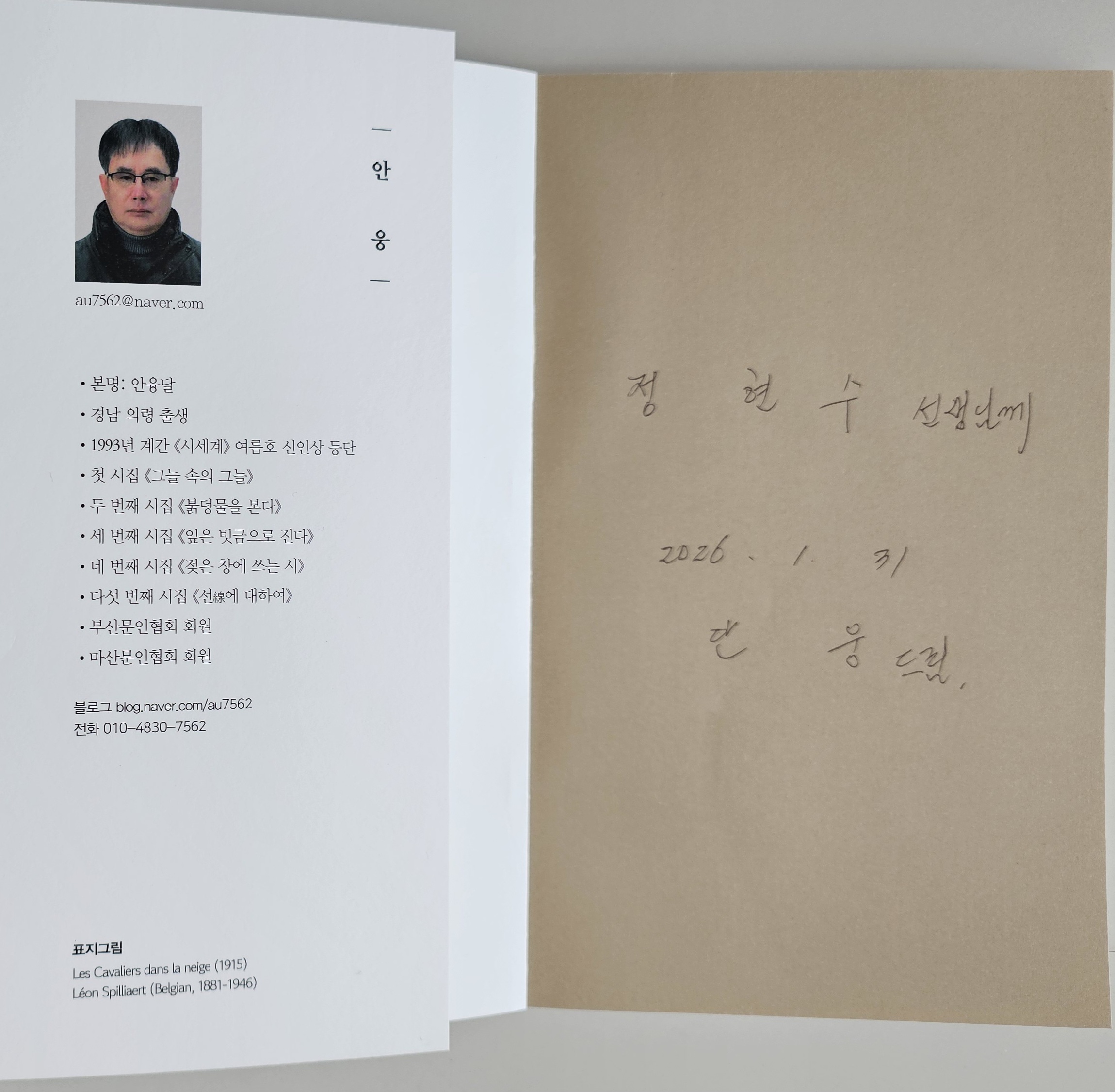 안웅 시인의 시집은 기자 현직에 있을 때 시집 <붉덩물을 본다>를 소개한 인연이 있어 이후에도 계속 시집을 선물받는다.