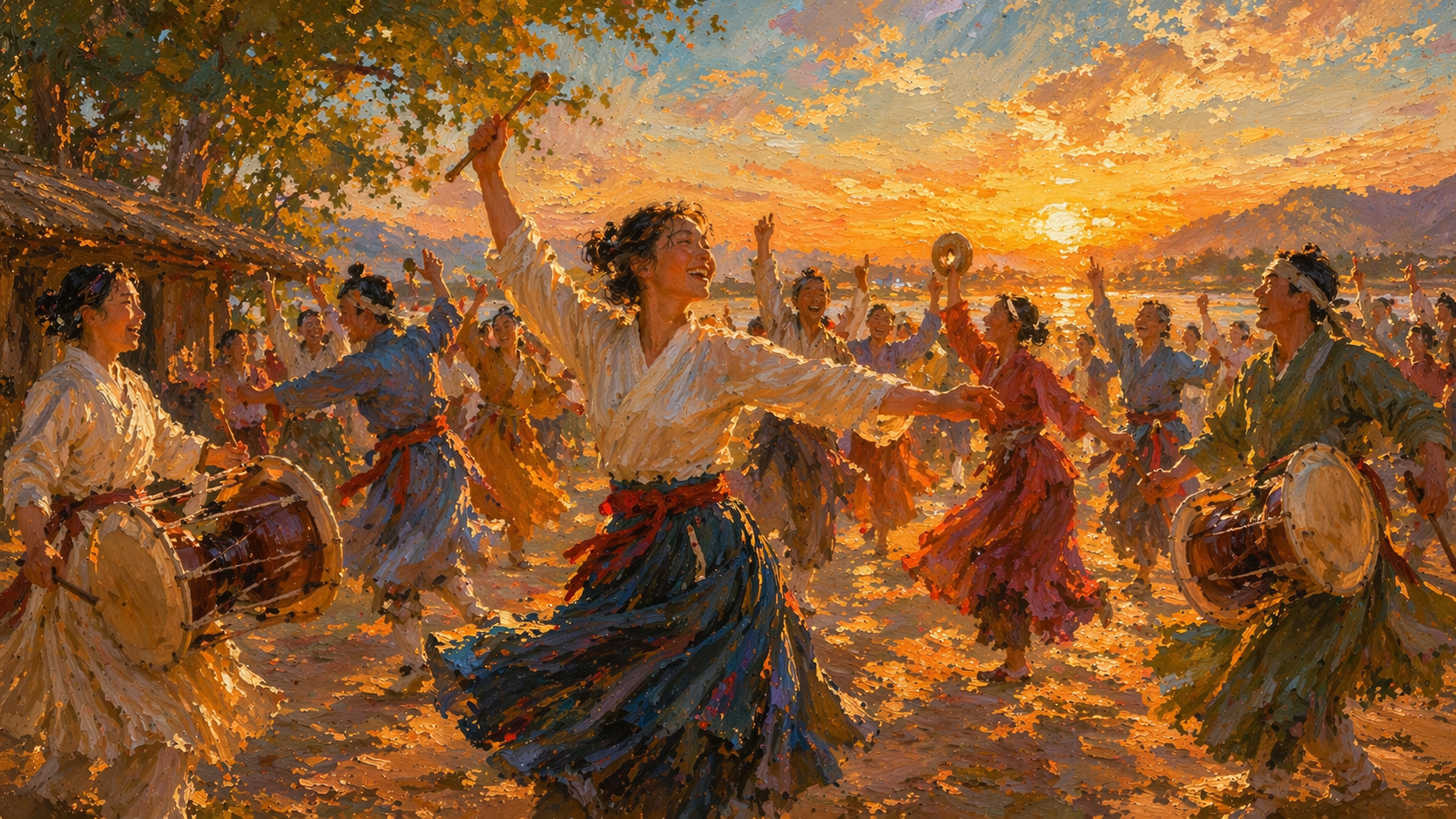 - 판화 (Woodblock Print): 투박하고 강렬한 선
