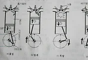 일반적으로 로커암과 밸브의 간극은 0.5mm로 배기밸브쪽 팔의 길이가 좀 더 길다. 강사의 설명과 약간 차이가 있는데 책에선 흡입밸브쪽 0.2~0.35, 배기밸브쪽 0.3~0.40으로 나와있다. 밸브의 기능은 연소실에 유입 유츌되는 가스의 밀봉작용이다. 또한 필요시 흡배기 밸브가 개폐되어 연료와 연소가스의 출입을 담당한다. 특히 배기밸브는 폭발후 고온의 가스가 나가므로 항상 고온에 노출되니 내열성이 우수한 것이어야 한다.