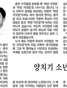 분류 전체보기1359 <굿바이 보이> 낙오자가 된 두 남자 이야기 노홍진 감독의 2010년 작 '굿바이 보이'는 적어도 내가 보기엔 진우라는 주인공 아이가 겪는 두 남자의 이야기를 다룬 이야기다. 하나는 백수로만 살아가는 아버지와 또 하나는 신문팔이하면서 만난 창근이란 친구다. 아버지에게서 가정이란 잠시 머물렀다 떠나는 철새 둥지와 같은 존재다. 그런 아버지에게선 자식들이 몰랐던 병이 있다. 심각한 위염이다. 뒤늦게야 짜장면을 먹지 않은 이유를 알게된 것은 주인공을 더욱 슬프게 한다. 사실 위염으로 죽어서 슬픈 것이 아니라 첫번째 결혼을 실패하면서 모든 희망을 포기하고 삶을 살다 간 것이 슬픈 것이다. 삶을 포기하는 두 가지 방법 중에 진우의 아버지는 자살 보다는 비루하게 사는 쪽을 택했다. 결국 그러한 삶이 조금이나마 가족에게 '보험금'이라는 목돈을 안겨다주긴 했다만.. 2011. 10. 31. 표리부동? 또다른 명박산성 아무리 대통령이라도 언행이 일치하기란 쉬운 일이 아닌가 봅니다. 아니면, 대통령이니까 언행이 일치하지 않아도 되는 특권이 있는지도 모르죠. 이번 청와대 인사에서 어청수 전 촛불집회 명박산성 주인공을 경호처장으로 발탁했습니다. 그것도 이번 서울시장 선거에서 한나라당이 참패를 당하고서 MB하신 말씀 "이번 선거에서 보여준 젊은 세대의 뜻을 깊이 새기겠다"고 한 직후의 액션이어서 더 황당합니다. 예전에 이명박 대통령은 '양치기 소년이다'라는 칼럼을 쓴 적이 있습니다. 입만 열었다 하면 거짓말이라는 생각이 들어서 그렇게 표현했던 것인데, 거짓말쟁이에다 표리부동까지 겹쳤으니 드라마에나 있을 법한 '악역'의 전형입니다. 선출된 정치인은 그 유권자의 그릇을 그대로 반영한다고 했는데, 나야 찍지는 않았지만 그런 불명예.. 2011. 10. 28. (농사)배추가 올핸 참 무럭무럭 자랐다 배추농사? 뭐 농사랄 것도 없지만 올해만큼 제대로 지어본 적은 처음이다. 거름주고 비닐씌우고 모종 심고 물주고 농약치고.. 뭐 그런거 말로 별로 없긴 하지만 출퇴근 때에 오며가며 관심을 쏟은 것도 농사라면 농사다. 작년과는 확연히 다르다. 속도 제법 튼실해질 것 같다. 이번 배추를 보면서 느낀 건데, 작물이 얼마나 잘 자라느냐는 심기 전에 뿌리는 거름과 수시로 쳐주는 농약이 관건이다. 남에게 팔 농산품이라면 농약을 제대로 치지 못하겠지만 어쨌든 우리가 먹을 것이니 농약을 친만큼 깨끗하게 씻어서 먹어야 한다. 몇 포기 되진 않지만 이번 겨울엔 꼬박 김장김치로 버틸 수 있겠다. 숭늉을 찾은 건지는 모르지만 벌써 마음이 넉넉하다. 이런런,,, 인간의 간사함이란... 2011. 10. 26. (사생활)고장난 보일러 3만3000원으로 수리 '월동준비 완료' 사실, 어떤 때에는 자만스럽게도 내가 할 수 없는 것은 어떤 것들일까 하는 생각까지 하게된다. 특히 이번과 같이 아무리 전기보일러를 켜놓아도 방이 따뜻해지지 않았을 때 귀뚜라미 보일러 AS기사를 부르지 않고 또한 돈도 얼마 들이지 않고 해결을 했을 때엔 더 그렇다. 먼저 이번 전기보일러 수리 성공기부터 기록을 하자면, 2주 전 쯤 날씨가 싸늘해지면서 온가족의 성화와 같은(?) "보일러 불 좀 넣어요" 데모에 못 이겨 보일러 전원과 콘트롤기 스위치를 올렸건만 하루가 지나도 좀체 방이 따끈해질 기미를 느끼지 못했다. 그런데다 내가 좀 바쁜 사람이냐. 매일 아침 부랴부랴 전광판(경남대 앞 댓거리에 있는 경남도민일보 뉴스광고전광판)에 기사도 만들어 올려야지. 사실 이게 요즘 시간 제작시간 단축됐다 해도 한 시.. 2011. 10. 25. 아름다웠던 할머니의 손 할머니께서 돌아가신지 1년이 다되어 갑니다. 할머니께서 운명하시기 하루 전, 점심 때 죽을 차려 드리려고 계시는 집에 들렀을 때 내 손을 잡으며 그윽한 눈빛으로 보시던 얼굴이 떠오릅니다. 말은 않으셨지만 참 많은 말씀을 하셨습니다. 오랫동안 손을 꼼지락꼼지락하면서 입술도 조금씩 움직이셨습니다. 제가 이집에 시집 온지 5년 가까이 된 터였으니 아마도 지금까지 있었던 여러 일들을 말씀하셨을 겁니다. "할머니, 죽 드릴까요?" 평소엔 '안 먹을란다'하시던 분이 이날은 말씀 없이 고개를 끄덕였습니다. 전 속으로 이제 다시 기운을 차리시려나 생각했습니다. 시어머니께서 아무리 식사를 하라고 해도 않던 분이 그날은 어쩐 일인지 많은 양의 죽을 드셨습니다. 한그릇을 다 비웠으니 말입니다. 어머니도 놀라셨죠. 설거지를 .. 2011. 10. 19. (한국어번역 연습) 엉뚱한 질문에도 귀기울여 주세요 엉뚱한 질문에도 귀 기울여 주세요 Хүүхдийнхээ овилгогүй асуултанд ч анхаарлаа хандуулаарай "초등 4년생 아들을 둔 엄마입니다. 요즘 세상은 제가 초등생이던 시절과 너무 많이 달라졌어요. 해마다 너무 많은 것들이 변하고 있죠. 우리 아이들이 성인이 되는 20년 후 사회는 어떻게 달라질까요? 그걸 알수 없는 저로선 아이를 어떻게 키워야 할지 막막하기만 합니다. 요즘은 창의력이 중요하다는데 어떻게 해야 아이의 창의성을 키워줄 수 있을까요? Би бага сургуулийн 4 дүгээр ангид сурдаг хүүтэй. Одоо үе миний бага сургуульд сурч бай