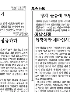 분류 전체보기1359 할머니께서 돌아가셨다 그렇게 눈물이 흐르더니 새벽 세시 반, 이제 말랐나보다. 아이들 혼자 두기 뭐해서 집으로 들어왔다. 빈소엔 어머니와 아내가 지키고 있다. 아내는 한국에 와서 근 6년 만에 처음 상을 당한다. 아내의 눈도 퉁퉁 부었다. 좀 전에 전화가 왔는데 아직 안 자나 보다. 아침부터는 매우 고될 것인데... 서인이는 막내가 자다 깨어 울까봐 옆에서 자다가 아빠가 들어오니 제 방으로 말 없이 건너간다. 중3, 이제 알 것 아는 나이여서 그런지 내가 들어올 때까지 제대로 잠 못자고 울었나보다. 초등학교 6학년인 승환이는 아직 상황파악이 안 된 모양이다. "할머니가 숨을 안 쉰대"했는데, "무슨 말이예요? 무슨 말이예요?"하고 자꾸 반문하더니 할머니 빈소에 모시고 새벽에 돌아와보니 잘도 자고 있다. 막내는 벌써부터 잤는데.. 2010. 11. 23. 27억대 미술품도난사건 피해규모 커 수사확대 경남도민일보 뉴스전송 20101123 '경은인수' 경남의 힘 컨소시엄 구성완료 추진위, 사무국 현판식 '창원천 부실시공' 도, 창원시에 조사요구 "결과따라 책임묻겠다" 통합창원시 내년 예산 2조 2000억원 편성 당초예산보다 1.1%늘어 "부실시공·환경파괴 사방댐 공사 심각" 여영국 도의원 지적 유엔기후협약 총회 창원시 유치나서 27일 개최지 결정 청년일자리창출 열쇠 수요·공급 '미스매치' 도, 연구용역 의뢰 27억대미술품도난사건 절도혐의자 9명 입건 피해규모 커 수사확대 지방선거 금품수수의혹 박완수시장 증인 참석 "5000만원전달 몰랐다" 2010. 11. 23. 사이판 총기난사 사건 1년 만에 법정 간다 경남도민일보 뉴스전송 20101122 사이판 총기난사 사건 1년 만에 법정 간다 여행사 책임범위 관건 경상남도, 국토부 상대 시행자 지위 확인 등 '낙동강'소송 23일제기 노무현전대통령 봉하사저 일반공개…시기는 미정 재단 "기념사업 일환" 경남도청 ~ 창원광장 공원형 문화예술공간 창원시 "명품거리 조성" 민주당·경남도관계자 21일 국회에 집결 '4대강 반대' 공동결의 이국철 SLS 회장 집행유예…실형 모면 외부감사 법률위반 등 마산 합포·회원지역 보육시설 공급률 141% 계속 허가…경쟁심화 경남지역 땅값 상승세 함안 전국2위 거제5위 국토부,지가변동률조사 2010. 11. 22. "노무현을 따르겠다" 부엉이바위서 50대 투신 경남도민일보 뉴스전송 20101120 부엉이바위서 50대 투신 "노무현을 따르겠다" 현장서 유서 발견 진주문화원 김진수원장 '6·2선거 특정후보지지' 징역4월 집유1년 선고 중소기업 80.5% "이번 금리인상 부적절" 중앙회, 293개사 조사 창원시 12월부터 새 교통카드시스템 도입 각종 후불카드 사용가능 통영 삼호조선소 화재 "지하통로 전선작업중" 직원3명 연기질식 사망 창원시설관리공단 다문화 다자녀가정 내달부터 이용료 감면 지리정보 등 통합관리 통영시 도시정보시스템 구축완료…본격 실용화 진주시 경제살리기 중심 15년만에 행정기구 개편 기능 중복 부서 통폐합 2010. 11. 20. 경남인사 1019명 '낙동강비상시국회의' 구성 경남도민일보 뉴스전송 20101119 수리가 수능성패 가를듯 학원가,수능 난이도분석 수리 언어 외국어 상승 도의회 개혁연대 의원들 '낙동강' 특위 구성키로 한나라 반발…진통예상 "낙동강용역비 집행중지" 이흥범도의원 발언논란 도"피해조사 마땅한 일" 경남인사 1019명 구성 '낙동강비상시국회의' 집회·시위활동 지속키로 창원천 부실시공 논란 시 "잘못된 것 없다" 김해연 "재시공하라" 대림 쌍용차 복직투쟁위 '자살 내모는 정리해고' 정부에 대책마련 촉구 진주시 경제살리기 중심 15년만에 행정기구 개편 기능 중복 부서 통폐합 도내 아파트상가 '인기' LH, 지상층 대부분분양 수요고정 위험부담적어 2010. 11. 19. [미디어흘겨보기]낙동강 사업관련 경남 일간지 사설을 보니 11월 들어 경상남도는 정부의 ‘낙동강 사업권 회수’ 문제로 심한 갈등양상을 보이고 있다. 경남도는 경남도 대로 보의 준설 반대와 피해대책을 마련해야 한다며 대화를 요구하고 있고 국토부는 국토부 대로 사업 이행하지 않으면 사업권을 되돌려 달라며 회수 통보를 한 상태다. ‘낙동강 전선 형성’이라는 표현마저 생길 만큼 사업권 회수 관련 대립은 심각한 상황에 처해있다. 경남도는 야당과 시민단체의 지지를 받아 낙동강 사업 강행에 반대 전선을 형성하고 중앙정부는 도내 시군 단체장들의 지지를 받아 경남도를 압박하고 있는 형국이다. 이러한 상황을 경남지역 일간지들은 사설을 통해 어떤 목소리를 내고 있을까? 낙동강 사업과 관련한 사설은 11월 들어 17일 현재까지 가 8건, 이 2건, 가 3건, 이 2건이다. 이중 가.. 2010. 11. 18. 이전 1 ··· 170 171 172 173 174 175 176 ··· 227 다음