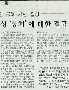 ○…오늘은 월말이라 경남신문과 경남도민일보가 문화캘린더를 싣는 바람에 문화소식이 크게 없다. 그럼에도 제법 눈길끄는 소식들이 보인다. 6월 7일 3.15아트센터에서 장애인과 비장애인 경계를 허무는 공연 드림 휠 예술단의 '희망의 소리아 몸짓'이 예정되어 있다. ○…의령예술촌이 7월 28일까지 일정으로 개촌 18주년 기념 작품전을 열고 있다. 정지태, 윤영수, 김선아, 조순미, 박화열, 육금숙, 강순태, 조희옥, 전문수, 곽향련, 염영희, 김정화 등의 작가들 작품을 만날 수 있다. ○…테너 최요섭이 독창회를 연다. 6월 2일 성산아트홀 소극장이다. 이 공연은 경남음악예술인협동자합에서 주최주관한단다. 최요섭은 창원시립합창단 수석 단원이면서 와인음악회 부린디시의 전속 연주자로 활동중이다. ○…6월 10일 6월..