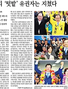 분류 전체보기1360 총선 결과 '지역주의 타파'로 보여 반갑다 반가운 일이다. 새누리당의 텃밭이라는 경남에서 4석을 다른 당에 내어줬다. 김해와 창원, 양산에서, 소위 낙동강벨트에서부터 변화의 조짐이 시작된 데는 지역주의 타파라는 큰, 의미심장한 결과를 보여준 것으로 평가된다. 경남도민일보는 1면에서 '영남 탈새누리…경남 반홍준표'라는 제목으로 영남과 경남의 선거 결과를 분석했다. 지난해 무상급식 중단 사태의 장본인이자 박종훈 교육감 주민소환 비리 등으로 신뢰를 잃은 홍준표 지사의 행보가 반 새누리 정서를 형성했다는 분석도 충분히 일리 있겠다. 국민의 준엄한 심판, 이번 선거에서 새누리당이 뼈저리게 받아들여야 할 화두다. 여당에다 국회 과반의석으로 한국의 정치를 입맛대로 저울질하고 밀어붙인 지금까지의 건방진 태도가 이제 이해의 수준을 넘었다는 얘기도 된다. 호남에서.. 2016. 4. 14. 오늘 도청 본관앞 육군의장대 사열공연 좋았어! 육군의장대의 의장사열 공연. 진해군항제 기간에 펼쳐지는 군악의장페스티벌인데 프린지 공연으로 8일 낮 12시 30분, 도청광장에서 펼쳐졌다. 몇 년 전 진해에 가서도 자리가 없어 결국 못보고 돌아왔던 기억이 있는데... 오늘 소원을 풀었다. 마침 일하고 있는 건물 앞에서 하다니 하늘이 내 마음을 알고 그랬을 거다. 두 팀이 공연을 했다. 앞서 한 팀은 춤서리무용단(?), 아마 맞을 것이다. 전에 춤서리 공연을 몇 번 본 적이 있는데, 딱 그 스타일의 마칭공연이었으니까. 동영상을 찍었다. 나만 본 게 너무 아까워 공유한다. 2016. 4. 8. 야권 단일화에 대한 두 가지 시선 봄꽃 산당화가 피었네. 후보 포기 정당엔 국고보조금 환수해야 29일 강원 춘천에서 더민주와 국민의 당 후보가 더민주 후보로 단일화했다. 경남 창원에선 더민주와 정의당 후보가 정의당 후보로 단일화했다. 며칠 전 인천 모든 지역구에서 더민주와 정의당이 이미 단일화했고 서울과 경기, 대전 등 여러 곳에서 더민주와 국민의당 간에 협의가 시작됐다. 국민의당 안철수 대표는 29일 관훈토론에서 당 차원의 선거연대는 하지 않겠다고 했다. 하지만 지역구별로 진행되는 단일화까지 막을 수는 없다고 했다. 단일화 쪽으로 미묘하게 움직였다고 볼 수 있다. 국민의당은 그동안 당 지도부와 상의해서 하는 것은 괜찮지만 그렇지 않으면 ‘정계 퇴출’ 같은 초강력 징계를 하겠다는 입장을 밝혀왔다. 앞으로 단일화 흐름은 야당들의 지도부가 .. 2016. 3. 30. 일체유심조, 말만큼 쉬운 건 아니지만 예전에, 몇 년도였는지 기억이 아슴아슴해서 적시해 말은 못하겠다만, 극단 마산에서 이만희 작품 ‘그건 목탁구멍 속의 작은 어둠이었습니다’란 연극을 한 적이 있다. 그걸 보려고 벼르고 별렀건만 결국 무슨 이유로 보지 못하고 말았다. 작고한 김태성 씨가 등장했던 작품이었다. 그게 그렇게 아쉽고 서운하고 해서 다음에 ‘목탁’ 공연이 있으면 봐야지 했던 게 희한하게 그것도 시기가 지나고 나니 식어버린 라면처럼 관심에서 멀어져버렸다. 최근에 다시 문화 관련 기사를 인터넷 여기저기서 뒤지게 되었는데, 물론 일 때문에, ‘목탁’이 눈에 들어왔다. 은근히 가슴에 불이 댕겨지더니 희곡이라도 읽어야겠다는 욕심이 발동했다. 도서관에 책이 있었다. 이래서 도서관이 좋은 거다. 1년간 내가 책을 몇 권 읽는지 말고 빌리는지 통.. 2016. 3. 24. 기차역 플랫폼에 관용차 타고 들어간 황교안 총리 경향신문 사설(2016.3.23) 기차역 플랫폼까지 관용차 타고 들어간 황교안 총리. 처음 제목을 대했을 때 서부활극이 연상됐다. 달리는 기차 옆을 말타고 달리면서 기차칸으로 뛰어오르는 서부의 사나이. 황교안 국무총리가 얼마나 다급했으면 떠나는 케티엑스를 잡아타기 위해 상상을 초월하는 행위를 벌였을까 싶었다. 서울역 시설이 급할 땐 자동차를 몰고 플랫폼까지 진압할 수 있게 만든 거라면 그렇다고 치자. 설마 서울역에서 황교안 총리도 그랬는데 다른 사람이라고 '바쁜건 니 사정이고' 하면서 막기야 하겠나? 그런데, 어찌 보면 진짜 창조(?)력이 뛰어나다. 어찌 플랫폼까지 차를 몰고 들어갈 생각을 다했을까? 우리 같은 사람은 상상도 못할 일인데... 그러니까 높은 자리 앉는 모양이다. 그것까진 좋다. 그런데, .. 2016. 3. 23. 3월 2~22일 경남도민일보와 경남신문 사설 제목 날짜 경남도민일보 제목 경남신문 제목 2016-03-02 [사설]대표 줄구속 경남FC, 정실인사 폐해 창간 70년 경남신문, 항상 正道를 걷겠습니다 2016-03-02 [사설]필리버스터에 열광하는 민심을 읽어야 선배들께 배웠다는 국립종자원 공무원 범죄 2016-03-03 [사설]측근 구속, 홍 지사 할 말 없나 지자체 건전재정 위한 과제 지속적 발굴하라 2016-03-03 [사설]위안부 합의 폐기해야 김해 경전철 정부지원 맞춰 자구책 서둘러야 2016-03-04 [사설]경남FC 대표 공모제로 뽑아야 새누리당 공천, 유권자가 납득할 수 있도록 2016-03-04 [사설]고양이에게 생선 맡긴 꼴 부영 주도 도내 대형사업, 명암 잘 따져봐야 2016-03-07 [사설]침묵은 도민에 대한 예의가 아니다 출처 밝.. 2016. 3. 22. 김종인 셀프공천 사설들 더불어민주당의 비례대표 공천에 김종인 대표가 2번으로 