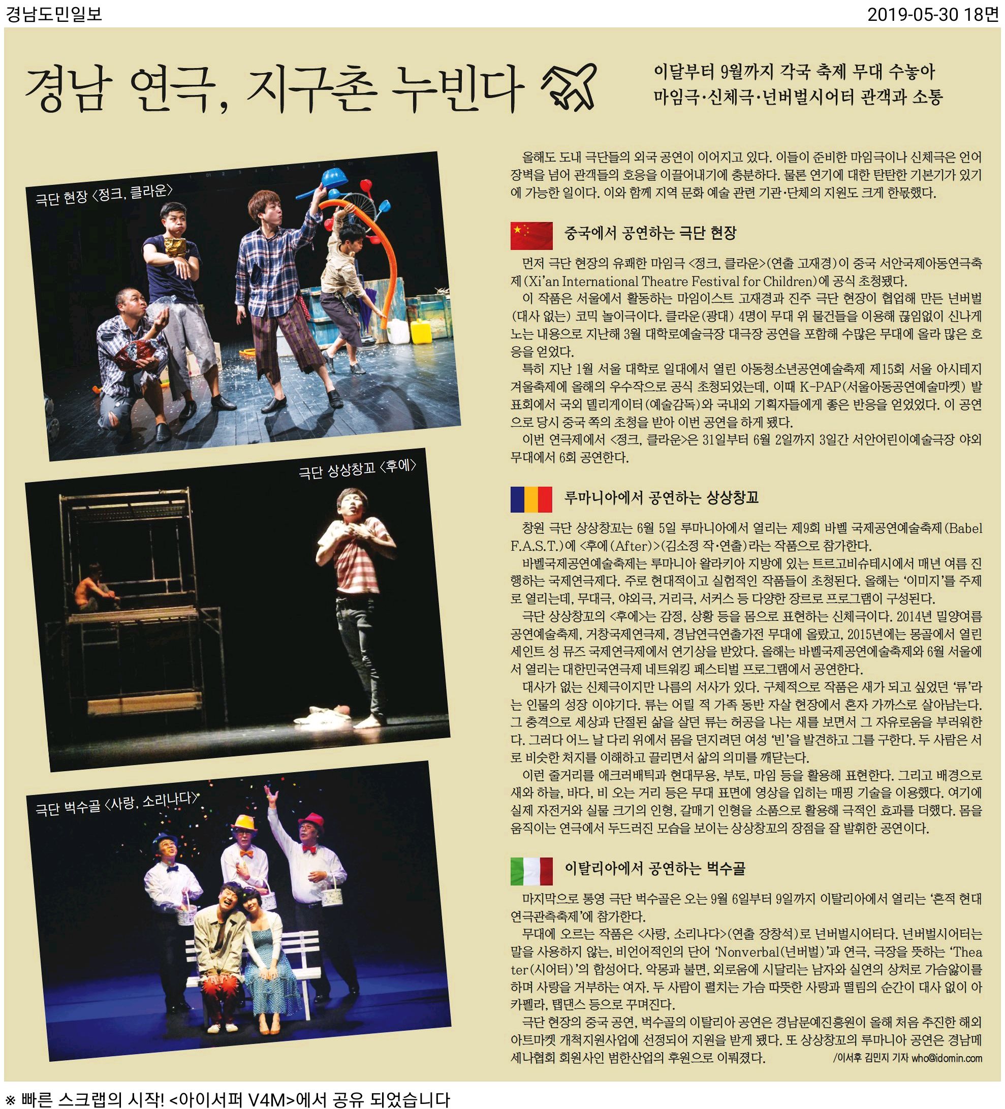 이 세 연극의 공통점이 있다. 모두 넌버블, 대사가 거의 없다는 것이다. 하긴 외국으로 나가는 작품이니 한국어로 된 대사가 오히려 현지에선 불리할 수 있겠지. 아직은 마임이나 신체극 등의 무언극이 국제 교류에 유리하다 하겠다.