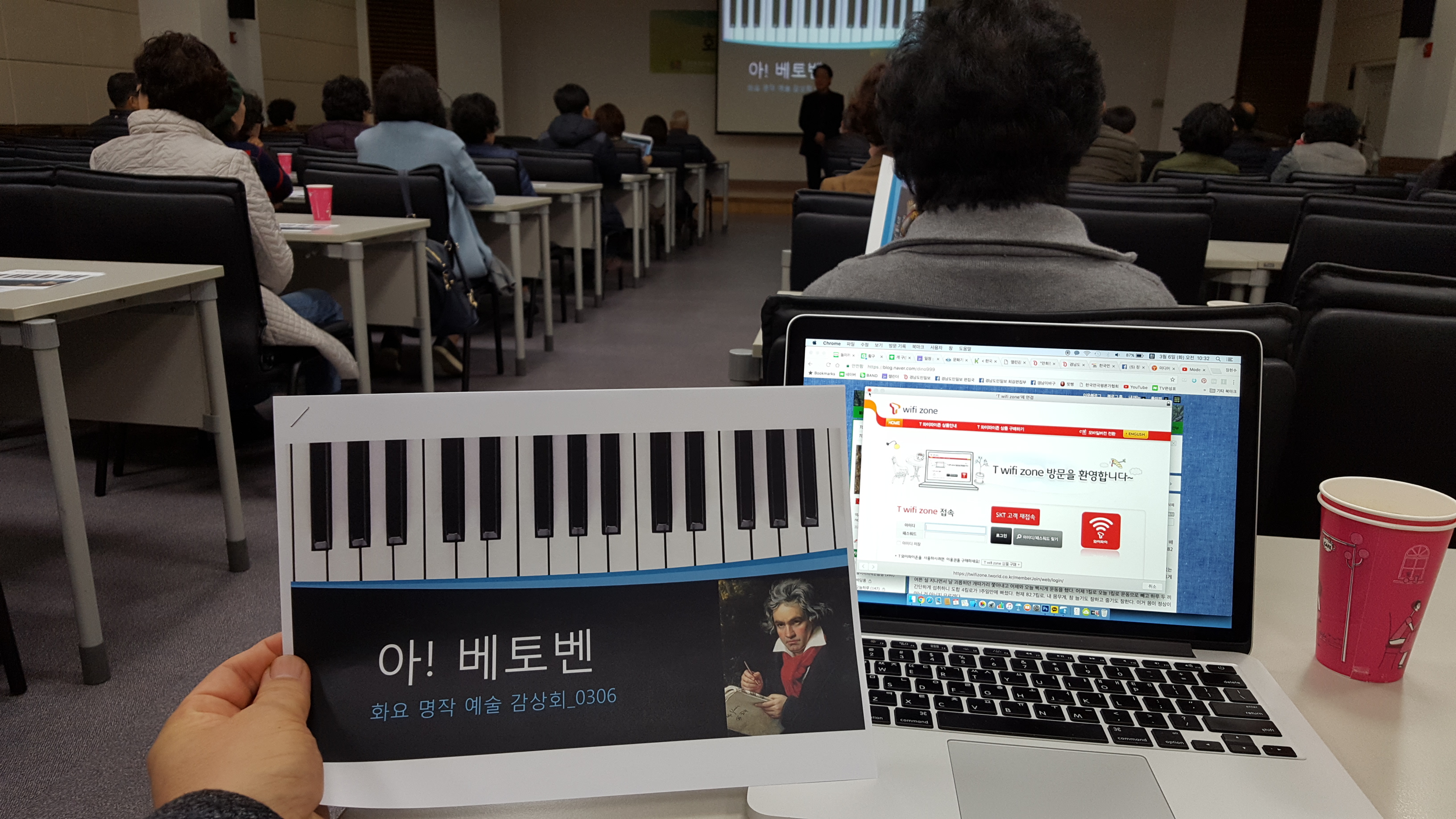 벌써 3년 오전에 시간을 낼 수 없어 화요명작감상회 강연에 참석하지 못하고 있다. 편집부 업무 볼 때 오후 출근이라 수강했는데 유익했던 기억이 있다. 강사진도 지역 전문가들이어서 좋았다. 직접 아는 강사도 있었고 대부분 한 다리 건너면 관계가 있는 사람들이어서 수업이 재미있었다. 이 강좌를 들으며 친해진 교수, 예술가도 생겼다. 어쩌면 이런 분들과 인연이 되어 더욱 지역 예술활동에 관심을 쏟게 된 건지도 모른다.