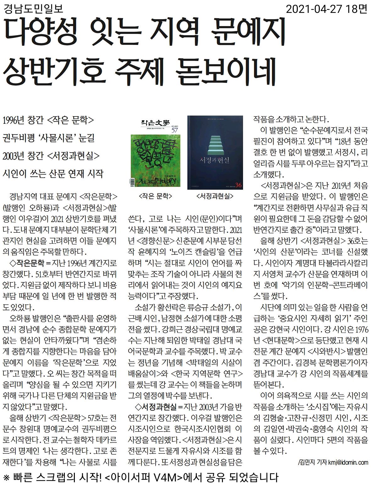 지역에서 발간하는 문예지를 보면 여기에도 투고를 한 번 해볼까 하는 욕심이 생긴다.