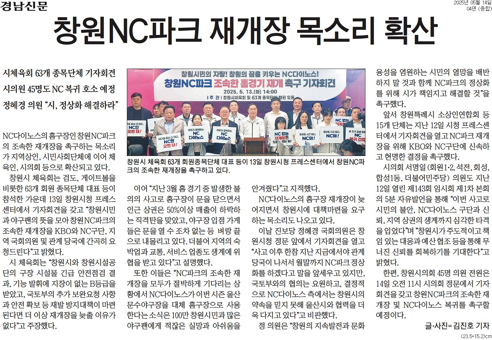 (주간경남뉴스픽)20250505창원NC파크 재개장 문제, 허성무 수사의뢰