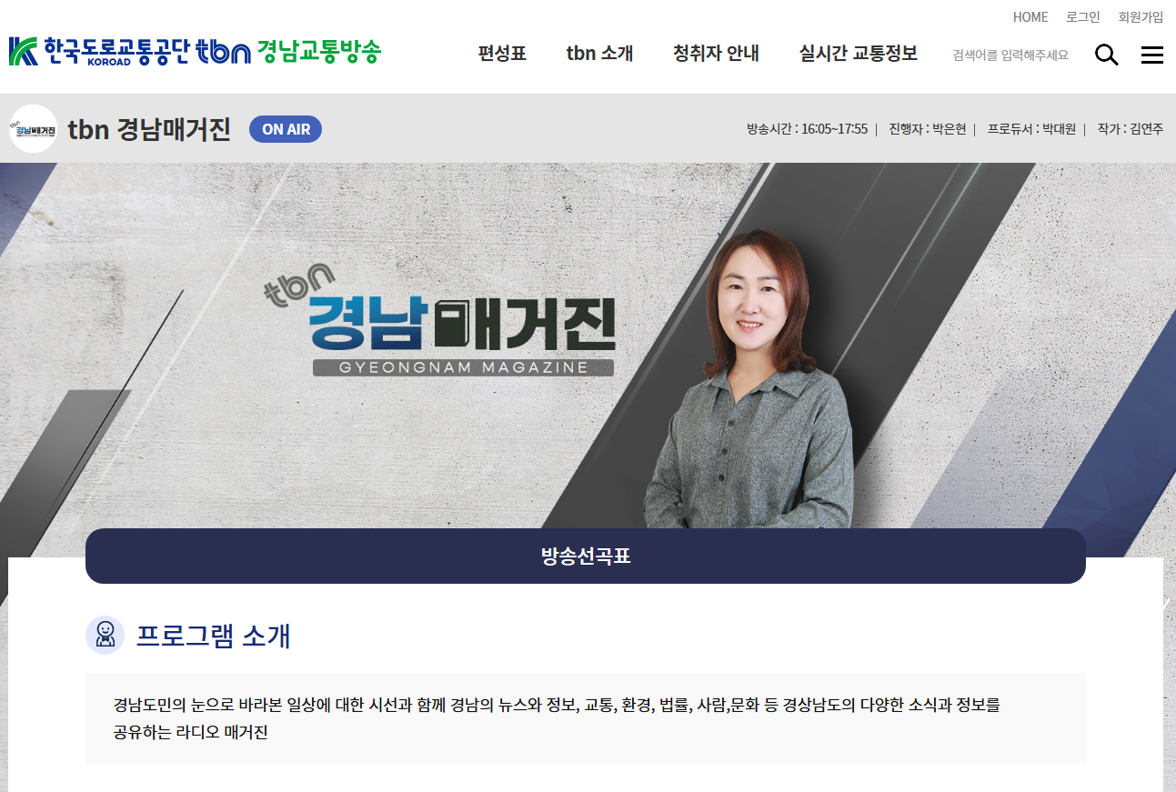 어제 방송분이다. 내가 개스트로 출연하는 방송은 경남교통방송에서 오후 4시부터 6시까지 진행하는 '경남매거진'인데 이 중에서도 오후 4시 35분쯤에 시작해서 12분 정도 하는 '주간경남뉴스픽' 코너다. 내가 방송대본을 써서 박은현 MC가 묻고 내가 답하는 형식으로 함께 브리핑을 한다.