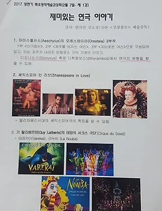 김소정14 극단 상상창꼬 <매직가게> 15일 함안문화예술회관 공연 마산 극단 상상창꼬 7월 15일 오후 7시 함안문화예술회관 대공연장 공연 ‘마술가게’라는 간판이 걸렸지만 판매하기 위한 옷들이 진열된 평범한 옷가게다. 조명이 밝아지면 점원이 마네킹을 들고 나온다. 쇼윈도 앞에 세우고 옷을 입힌다. 팔등신의 늘씬한 마네킹만 있는 게 아니다. 임신부 의상을 위한 배가 볼록한 마네킹도 있다. 점원이 나가자 마네킹들이 불만을 털어놓는다. 쉬지도 못하게 한다며. 그런데 옆 가게 알바 녀석들이 쇼윈도 앞으로 다가와 담배를 피운다. 이 녀석들 여기서 그치는 게 아니다 마네킹 치마 밑을 들여다 보려고 낑낑대고 킬킬댄다. 마네킹들은 혼이라도 내주고 싶은데 아직은 인간의 시간이라 움직일 순 없고 불평을 늘어놓는 가운데 밤이 된다. 드디어 가게 이름처럼 판타스틱한 일들이 펼쳐진다. 마네킹.. 2017. 7. 9. 재미있는 연극이야기 4강-드라마 재밌게 보기(김소정 상상창꼬 예술감독) 창원문화재단이 주최한 화요명작예술감상회 2월 프로그램 '재미있는 연극이야기' 마지막 강연은 '드라마 재미있게 보기'다. TV 드라마를 볼 때 그냥 스토리에 빠져 예사로 본다하지만 드라마에 나오는 인물들의 구조화된 특성이나 극의 이론적 배경, 장르적 특성 등을 알고 보면 보는 재미도 더할 듯 싶다. 보는 재미란게 아무래도 아는만큼 더해지는 법이니까. 단적으로 예를 하나 들자면, 국악을 재미있어 하는 사람 솔직히 별로 없을 것이다. 팝송이나 힙합 같은 장르는 처음 접해도 그 자극성 때문에 혹할 수 있지만 국악 중에서도 가곡이란 장르는 아무것도 모른 채 관람하게 되면 10분도 안 되어 온몸에 좀이 쑤시기 시작할 것이다. 체험해봐서 안다. 그런데 가곡의 탄생 배경부터 소리를 하는 방법, 시조(시절가조)와의 유사.. 2017. 3. 3. 재미있는 연극 이야기-화요명작예술감상회 2강 극단 상상창꼬 김소정 예술감독의 '재미있는 연극이야기' 2강은 1강에서 예고했듯이 양식극에 관해서다. 얼핏 양식극이 무슨 말인지 이해가 어려울 수 있겠다. 양식극이란 줄거리를 가진 서사극에 대비되는 극의 표현양식으로 부조리극, 이미지극, 비주얼 연극 등을 일컫는다. 그렇다면 이 양식극의 특징은 무엇일까? 첫째 줄거리가 없으며, 둘째 주인공이 캐릭터는 있으나 배경 설명이 없고, 셋째 결말이 없는 오픈 엔딩이라는 것이다. 해피엔딩도 아니고 언해피엔딩도 아니고... 어? 연극이 끝난 줄도 모르는 가운데 연극이 끝나는... 이러한 엔딩 처리는 소설에서도 많이 나타난다. TV에서도 베스트극장이라든지 TV소설 등에서 써먹기도 한 스토리 양식이다. 2강의 첫 작품은 그 유명한 사무엘 베케트의 다. 워낙 유명해서 모르.. 2017. 2. 15. 재미있는 연극 이야기-화요명작예술감상회 1강 연극은 재미 있다. 해본 사람은 연극이 얼마나 사람을 미치게 하는지 안다. 한때는 연극에 안 미치려고 발버둥친 적도 있었기에 그 매력을 안다. 아니 그건 매력이란 단어보다 마력이란 단어가 더 어울릴 것이다. 시기가 그러했다. 연극에 미쳐 생활을 보장하는 직장을 갖지 못하면 안타까운 드라마의 주인공이 돼야 했던 시절이었다. 물론 실력이 출중해서 살아남고 또한 연극을 이끌어갈 정도의 열정이 더해진다면 금상첨화다. 그런 사람들이 오늘날 한국 연극 수준을 이만큼 끌어올렸다고 해도 과언이 아니다. 수준이 높아진 한국의 공연예술에 많은 사람들이 관심을 보이는 것 같다. 먹고살기 팍팍했던 시절이 일부 중산층에는 지나간 듯하고 그래서 눈을 문화로 돌리는 것은 아닐까 가늠해 본다. 지난해 창원 성산아트홀에서 진행된 수요.. 2017. 2. 8. 창원문화재단 화요명작예술감상회 프로그램 추천 지난해 성산아트홀에서 하는 수요문화대학이란 프로그램을 1학기와 2학기 모두 수강했었다. 퍼뜩 기억나는 강사들을 꼽아 보니, 뮤지컬 배우 홍금단, 개그맨 전유성, 그리고 김진호 손심심 부부, 아, 문현우란 아리랑 청년도 기억난다. 1, 2학기 총 24강좌를 통해서 문화에 대한 감각이 확대된 계기가 됐다. 특히 클래식 분야는 별로 의식적으로 공부하려고 했던 분야가 아니어서인지 새롭게 눈뜬 세계가 많았고 뮤지컬의 경우 홍금단과 김유진이라는 두 배우를 통해 뮤지컬 세계의 뒷얘기들을 접할 수 있었던 것은 이 분야의 문화를 새롭게 인식하게 되는 계기가 되었다. 그런 차원에서 3.15아트센터에서 진행되는 화요명작예술감상회란 프로그램도 연극과 음악, 미술이라는 예술 장르에 대한 이해의 폭이 훨씬 넓어지고 깊어질 계기가.. 2017. 1. 27. 극단 상상창꼬 26~28일 창동 가배소극장서 ‘마술가게’ 공연 도둑 대 도둑, 진짜 도둑은 누구?극단 상상창꼬 26~28일 창동 가배소극장서 ‘마술가게’ 공연 옷가게 쇼윈도 안에 서 있는 마네킹을 물끄러미 보면 이런 상상이 가능하겠다. 숀 레비 감독의 ‘박물관이 살아있다’란 영화를 본 이라면. 오는 26~28일 가배소극장서 열리는 극단 상상창꼬의 연극 ‘마술가게(Magic Shop)’에서 마네킹이 수다를 떤다. 오늘 갈아입은 옷이 얼마짜리며 몇 번이나 갈아입었는지, 사람들은 왜 비싼 옷을 좋아할까, 마네킹답지 않은 토론을 펼친다.