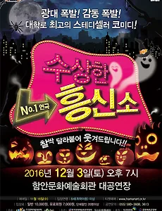 떠나지 못하는 영혼들의 사연1 [주말에 뭘볼까]떠나지 못하는 영혼들의 소원은? [주말에 뭘볼까]떠나지 못하는 영혼들의 소원은?극단 익스트림플레이 12월 3일 함안문화예술회관서 ‘수상한 흥신소’ 공연 수상한 흥신소 포스터를 보면 ‘고스트’들이 나온다. 핼러윈데이에 나오는 단골 캐릭터 호박귀신도 몇 개 그려져 있어 으스스한 분위기를 자아낸다. 무서운 연극일까? 전혀 아니다. 영화에 나왔던 그 고스트도 나오지 않고 호박귀신 역시 나오지 않는다. 그런데 여러 등장인물 중 세 사람만 빼고 모두 귀신이다. 귀신이란 표현보단 유령? 그것도 아니다. 전혀 무섭지 않으니 그냥 죽은 이의 영혼쯤으로 표현하는 것이 맞겠다. 극의 주인공 오상우는 행정고시에 미련을 버리지 못하고 다른 직업을 구해볼 생각도 않는, 그야말로 완벽한 백수다. 행정고시를 준비한다는 인간이 당구 오백에 만화방 최고의 단골손님, .. 2016. 11. 30. 이전 1 다음